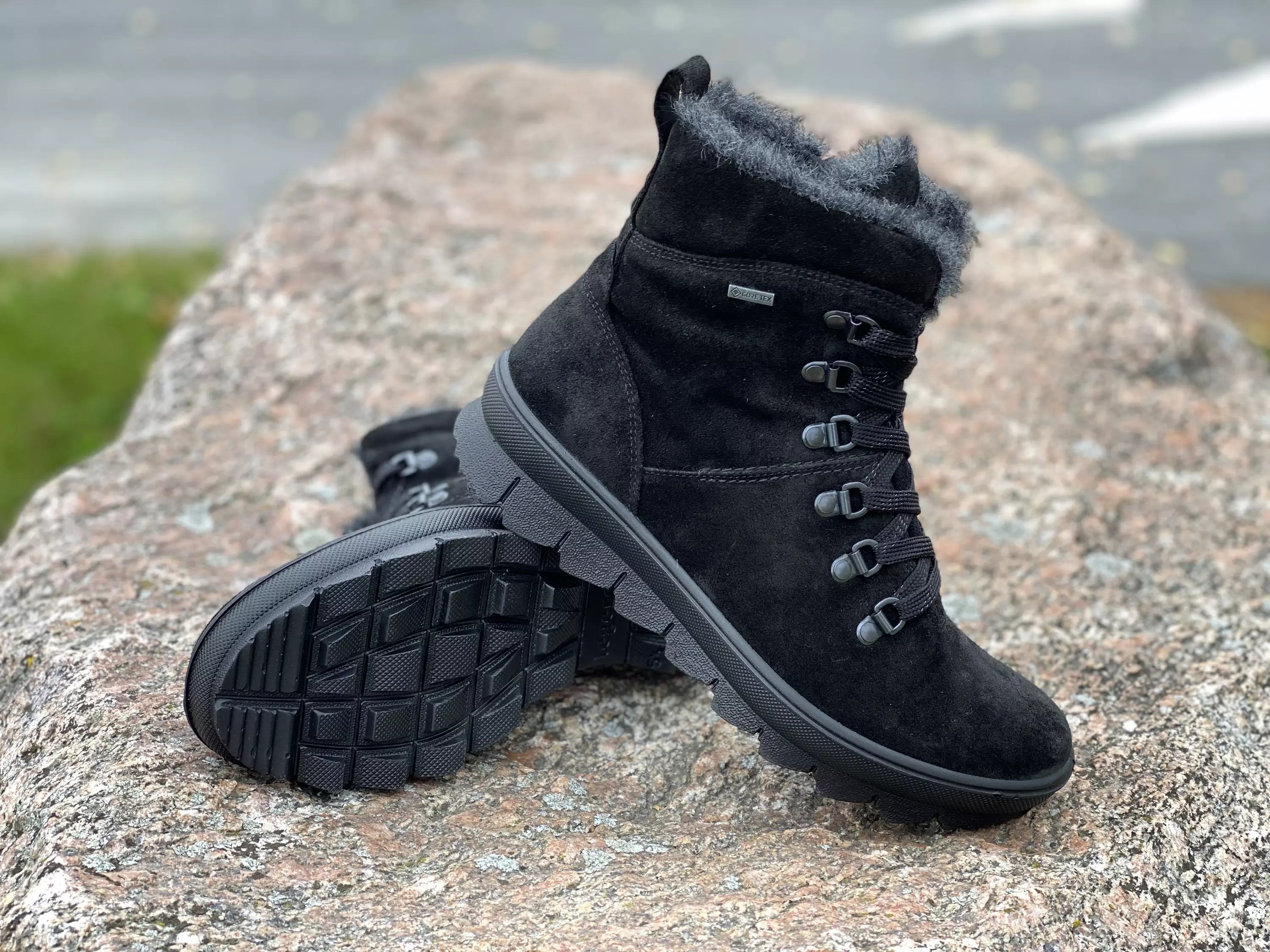 Mustat Legero GoreTex talvikengät lämpimällä pörrövuorella ja vaihdettavalla pohjallisella