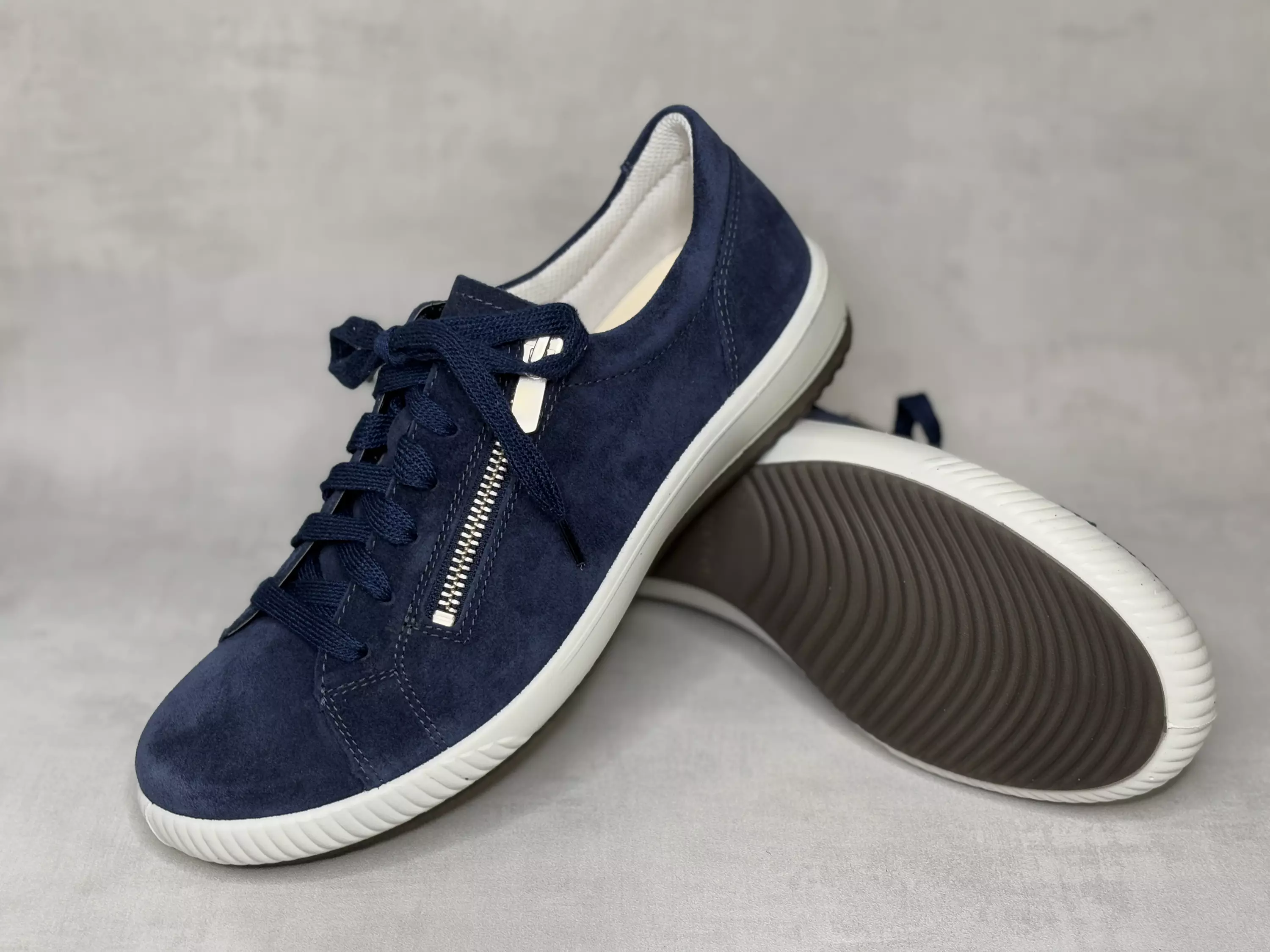 Tummansiniset Legero Tanaro 5.0 Bluette citytennarit. Legero Tanaro on yksi suosituimmista kenkämalleistamme! Näppärät nauhalliset kävelykengät sopivat moneen menoon. Ulkosyrjällä pukemista vauhdittava vetoketju, joten tarvittaessa säädät nauhat vain kerran ja hoidat kenkien pukemisen jatkossa vetskarin avulla. Vaihdettavat pohjalliset, joten tarvittaessa sujautat tennareihin omia tarpeitasi parhaiten vastaavat pohjalliset. Kannan korkeus noin 3cm, pohjan korkeus päkiän alta noin 2cm.