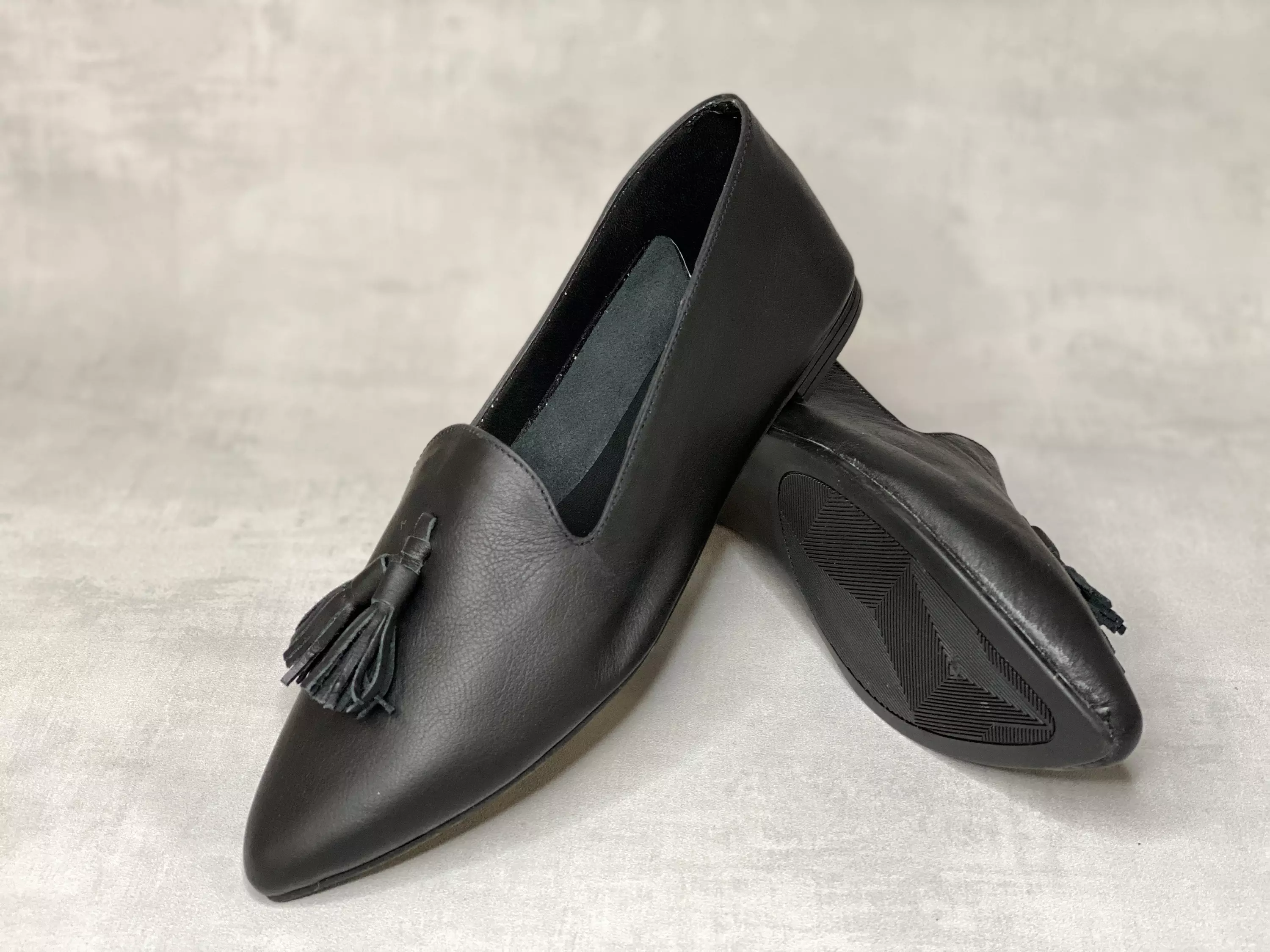 Mustat MAGO ballerinat. Sievillä nahkatupsuilla varustetut ballerinat. Tyylikäs kapeneva kärki. Ballerinojen pinta on pehmeää nahkaa. Vuorimateriaalit ovat myös nahkaa.