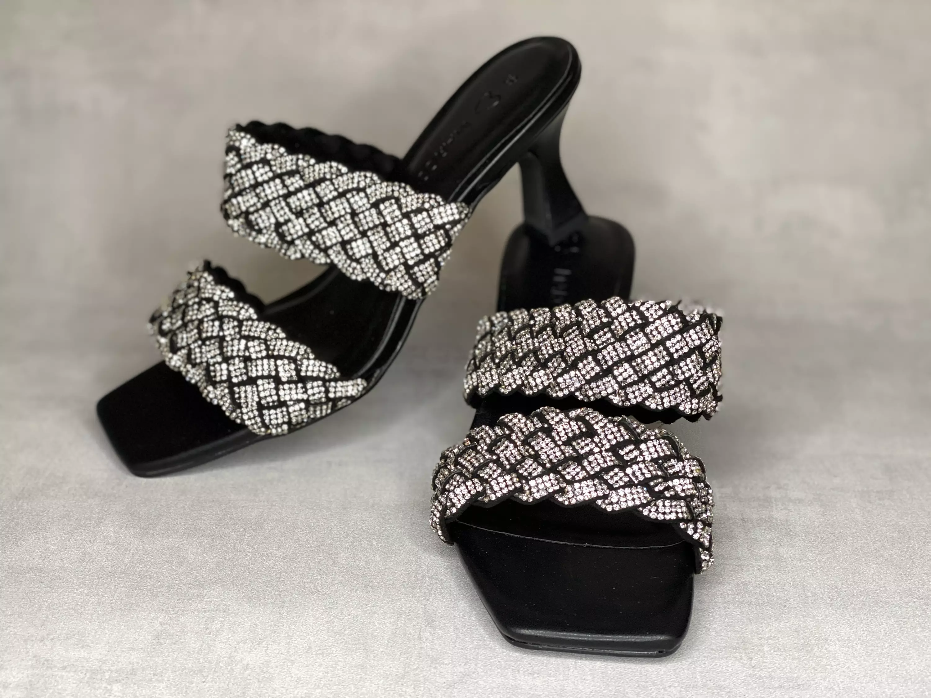 Mustat timanttisen kimaltavat Marco Tozzi. Erikoisen mallinen korko asettuu tukevasti kantapään alle. Tyylikäs katkaistu kärki.