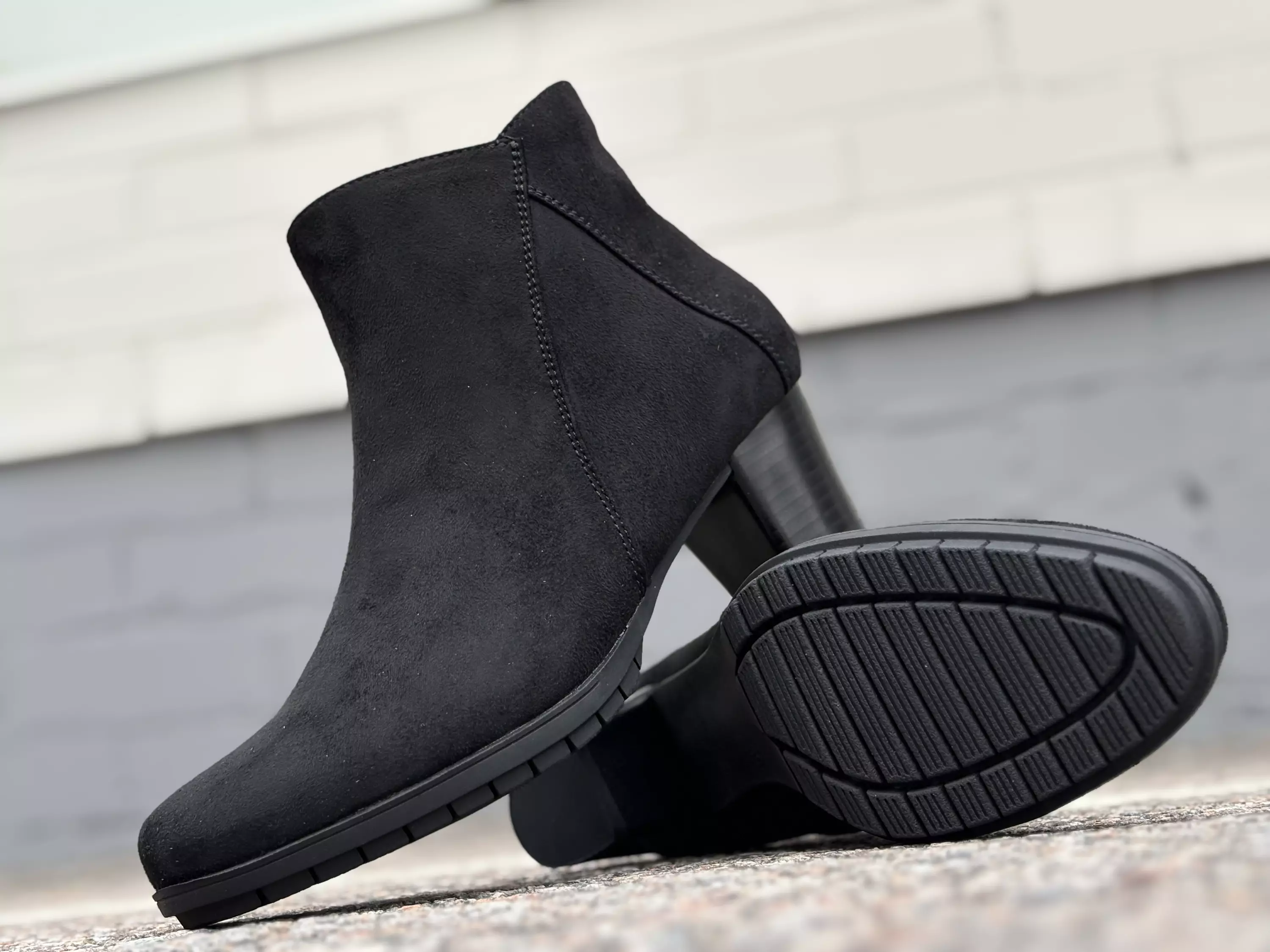 Mustat Migant Nicola nilkkurit. Korolliset nilkkurit, joissa on tyylikäs hieman kapeneva kärki. Sisäsyrjällä pukemista vauhdittava vetoketju. Pehmeä tekstiilinen keinokarvavuori. Kannan korkeus noin 5cm ja pohjan korkeus päkiän alta noin 1,5cm.