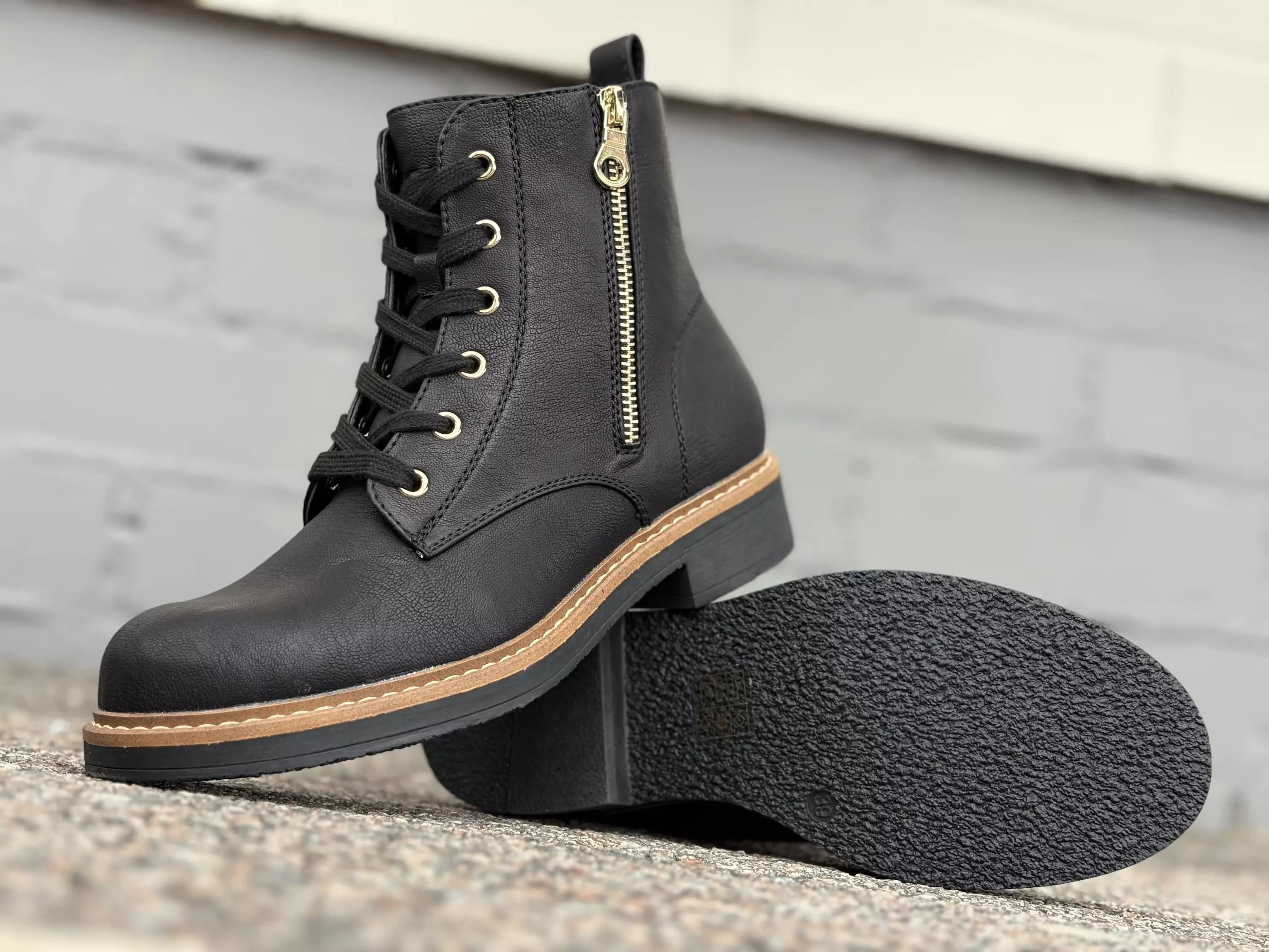 Mustat Migant Ellie maiharit. Matalavartiset maiharit on varustettu kultaisilla yksityskohdilla. Ulkosyrjälle sijoitettu kultainen koristevetoketju ja kullan väriset nauhoituksen sirkkarenkaat. Pohjan yläreunassa ruskea raita. Varren yläosassa vetolenkki. Kengän sisäsyrjällä oleva musta vetoketju vauhdittaa pukemista ja nauhojen avulla säädät kengät omaan jalkaasi istuviksi. Lestimitoitukseltaan nämä maiharit ovat normaalia mitoitusta. Kannan korkeus noin 3cm ja pohjan korkeus päkiän alta noin 1,5cm.