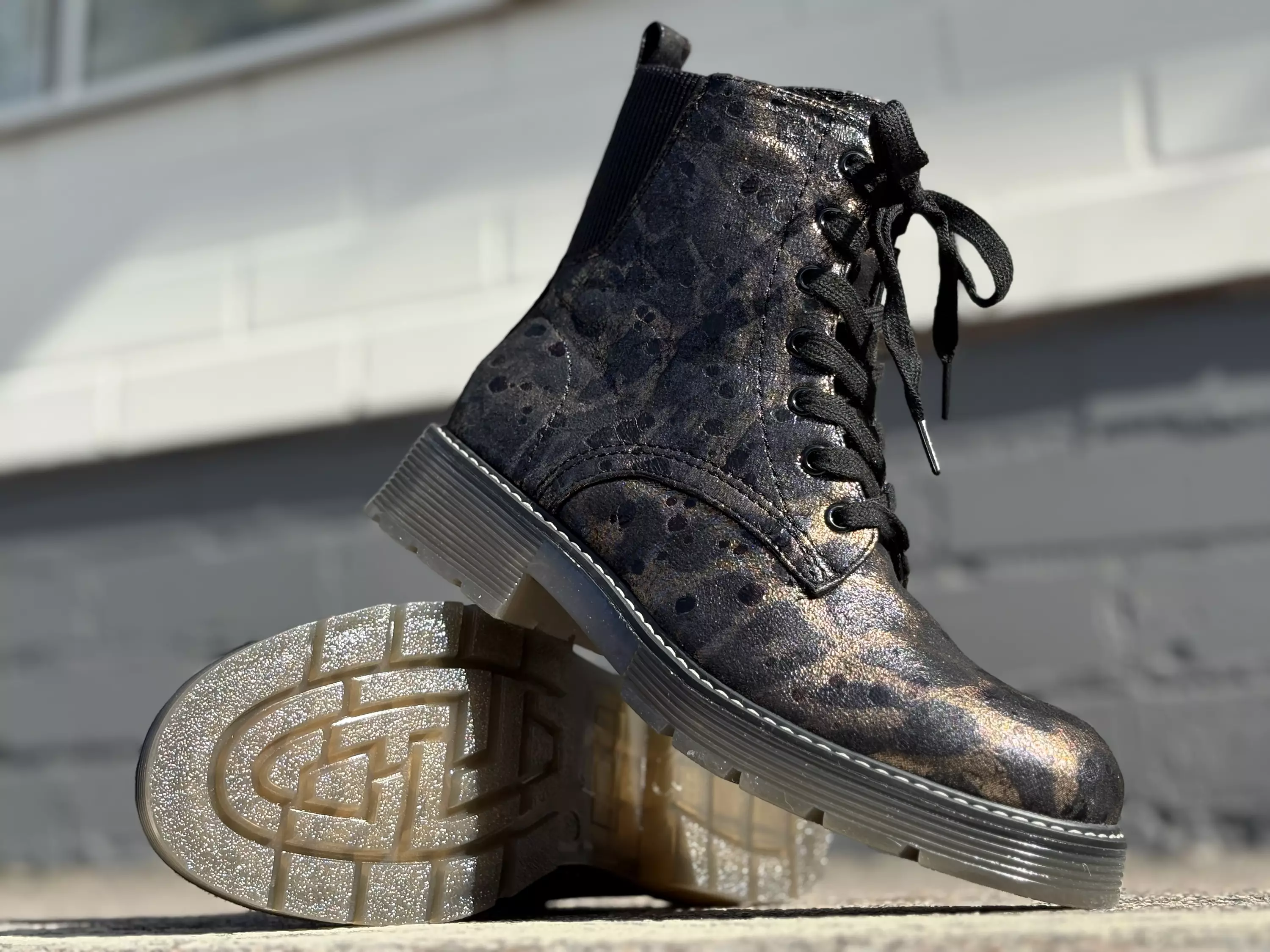 Leopardikuosiset Migant Cicci maiharit. Näyttävä tekstiilinen leopardikuosi on hitusen kiiltävä. Sisäsyrjällä pukemista vauhdittava vetoketju. Nauhojen avulla säädät kengät helposti omaan jalkaan sopivan kireälle. Pehmeä samettimainen tekstiilivuori, kiinteät huopapintaiset sisäpohjat. Kannan korkeus noin 4cm ja pohjan korkeus päkiän alta noin 2cm.