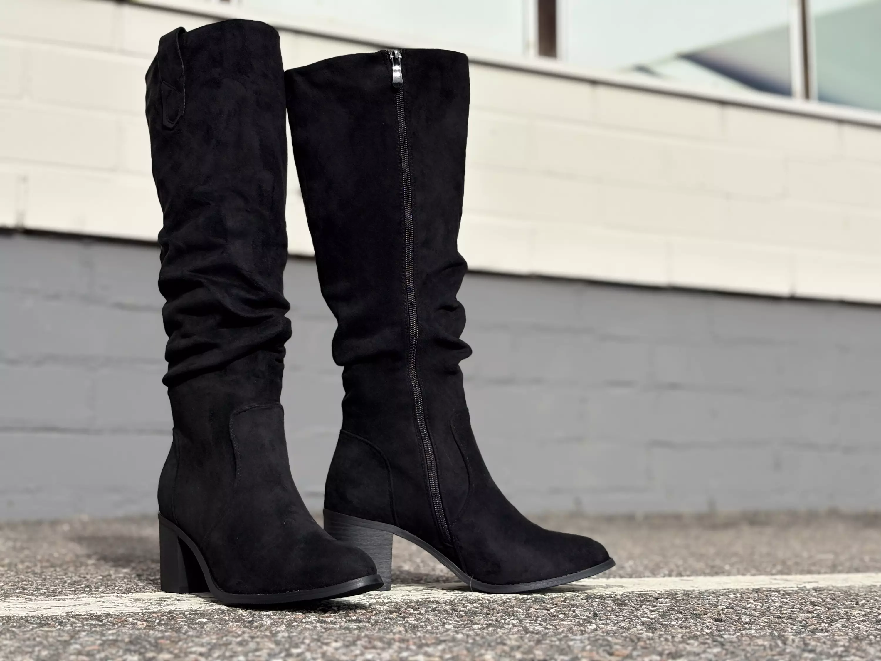 Mustat Migant Francisca saappaat. Upeat tekstiilipintaiset saappaat, joiden varsi jää varresta kevyesti laskostetuksi. Näiden korollisten saappaiden vuori on pehmeää teddykangasta sisäpohjan pintaa myöten. Tyylikäs kapeneva kärki. Sisäsyrjälle sijoitettu vetoketju vauhdittaa pukemista. Kannan korkeus noin 6cm ja pohjan korkeus päkiä alta noin 1cm.