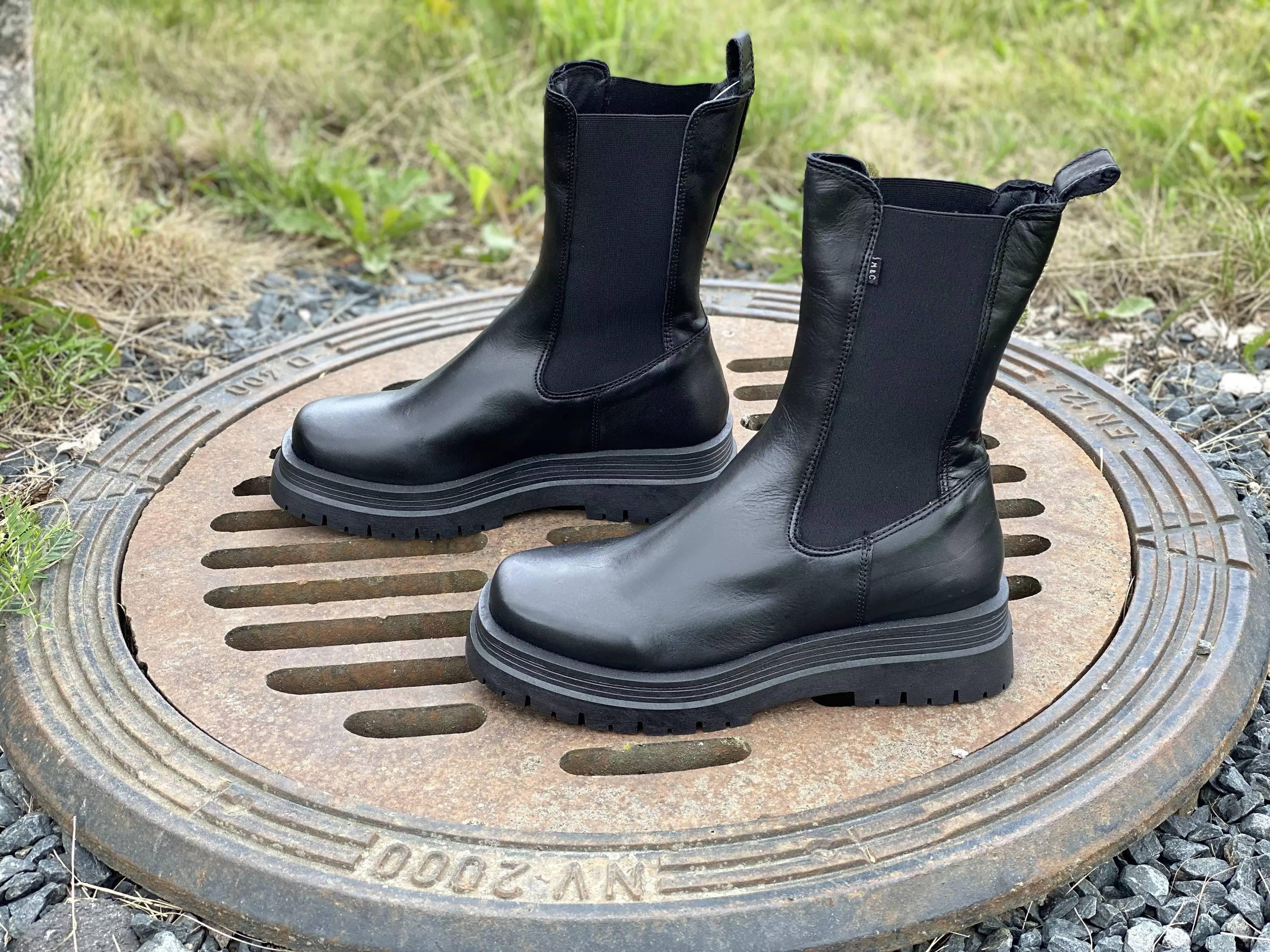Mustat Musse & Cloud Julia NBK nilkkurit. Sisä- ja ulkosyrjällä joustavat venykkeet. Suositellaan pitkää kenkälusikkaa pukemista helpottamaan ja varoitetaan etukäteen, että ensisovitukset voivat tuntua työläiltä! Paksu ulkopohja,
