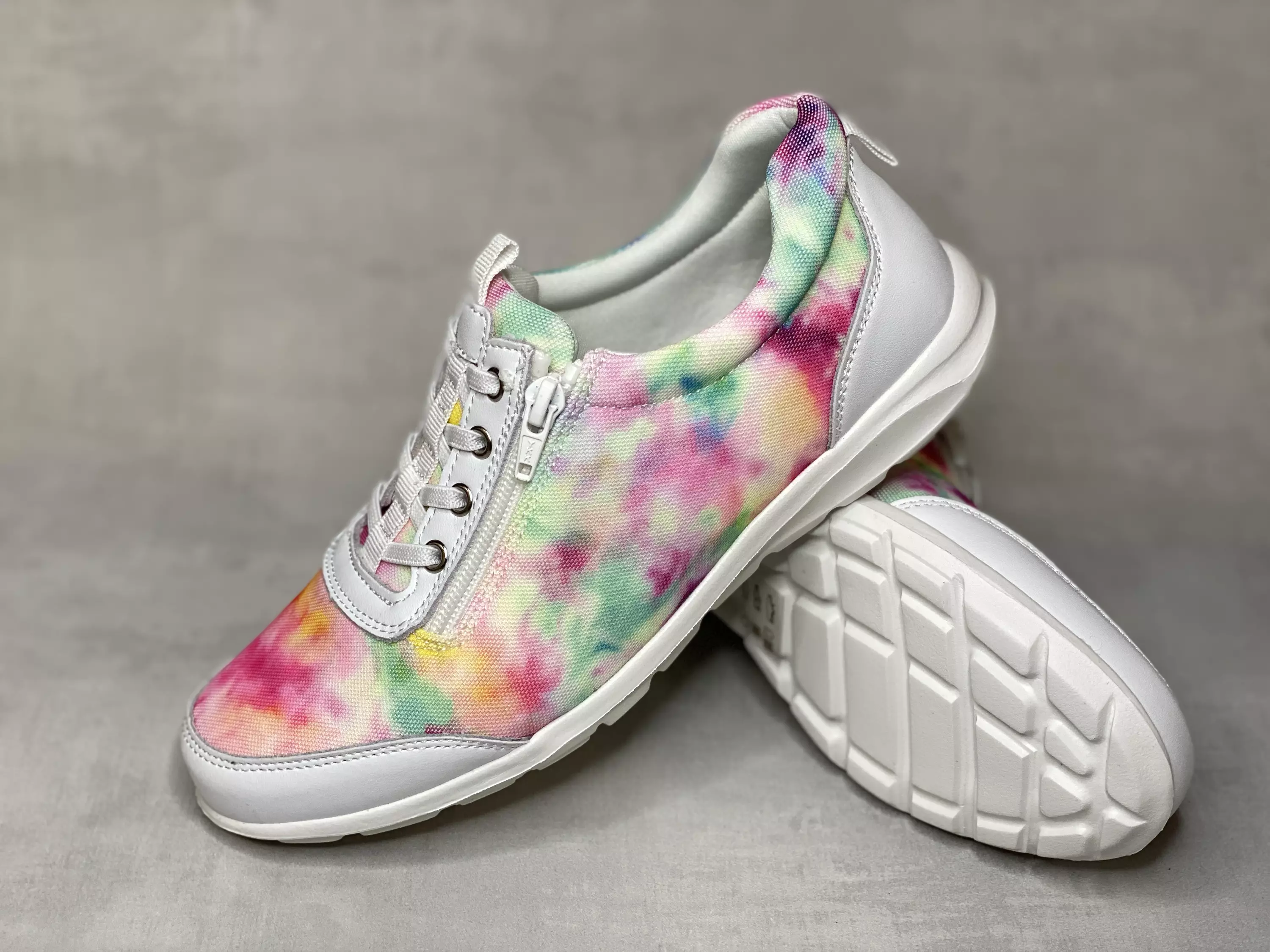 Moniväriset Natura Carissa tennarit. Kaikissa sateenkaaren väreissä hehkuvat ihanan kevyet kävelykengät. Jokainen pari on väritykseltään uniikki! Joustavat venykenauhat ja pukemista vauhdittava vetoketju. Kärki, kantakappale ja nauhoituksen ympärillä oleva kappale ovat nahkaa. Vaihdettavat pohjalliset, joten näihin tennareihin voit vaihtaa vaivattomasti omia tarpeitasi parhaiten vastaavat pohjalliset.