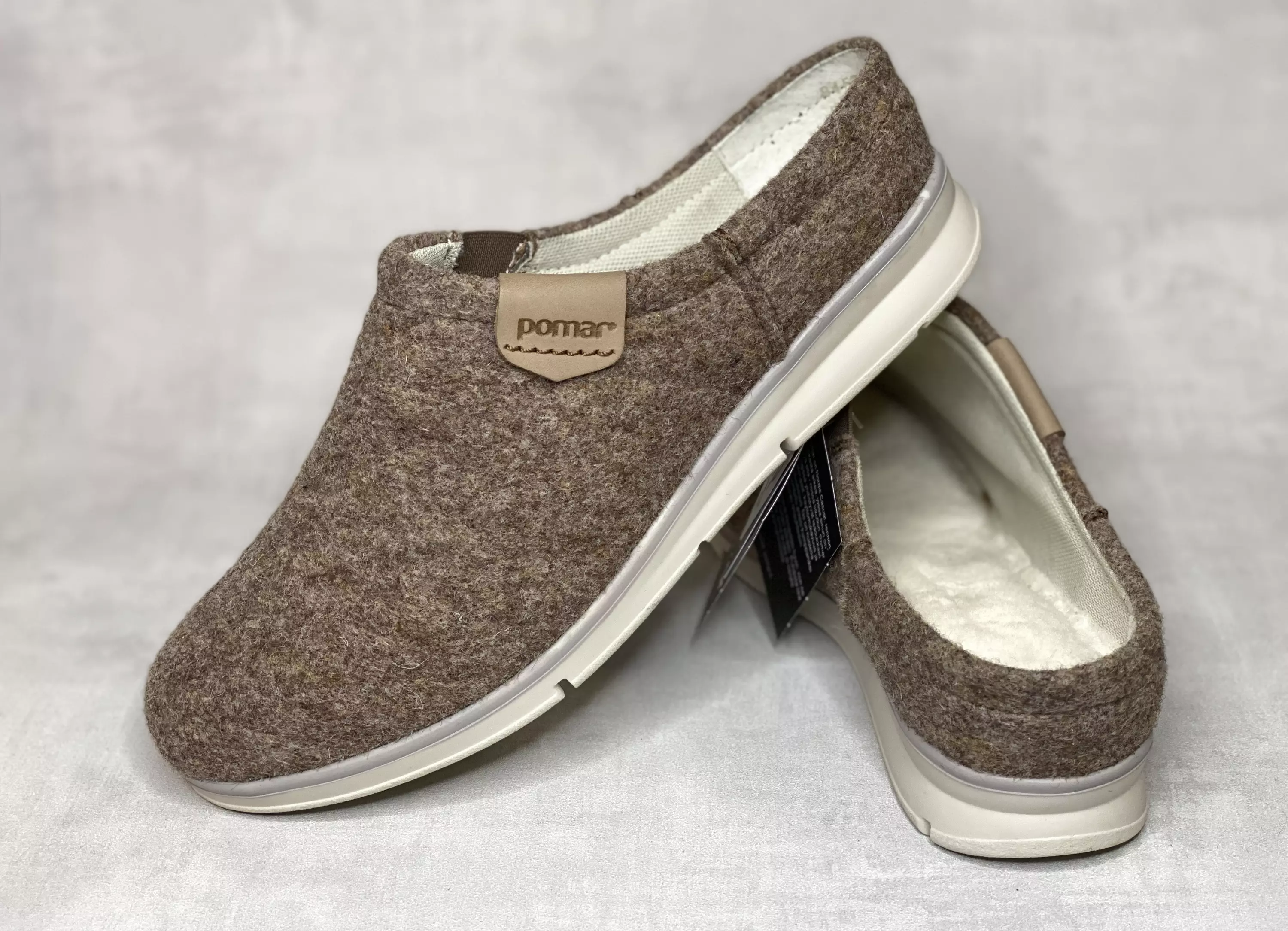 Vaaleanruskeat Pomar KIVI huopatossut lampaanvillaisella vuorella