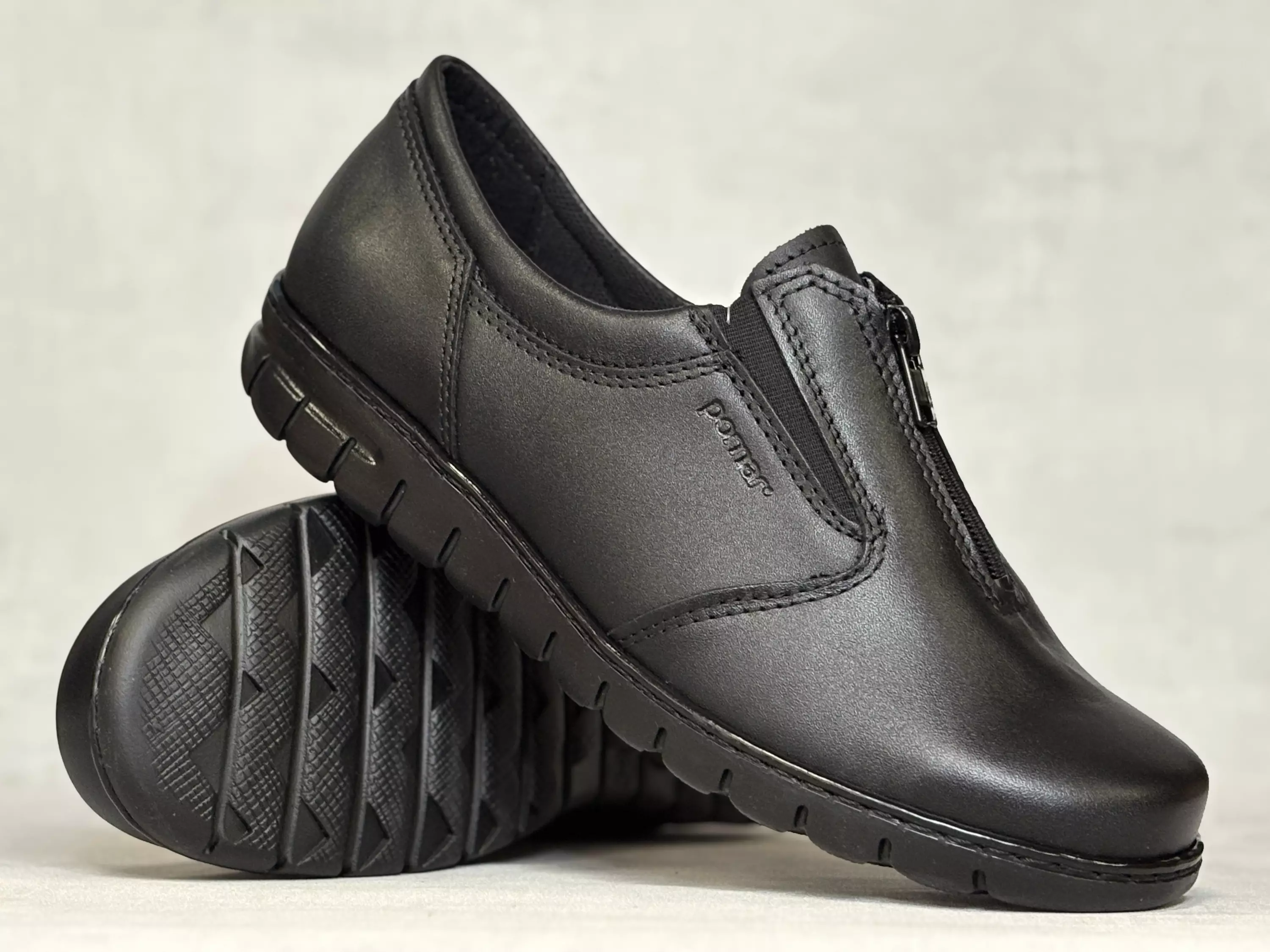 Mustat Pomar Plus Walker kävelykengät - vetoketju ja venykkeet