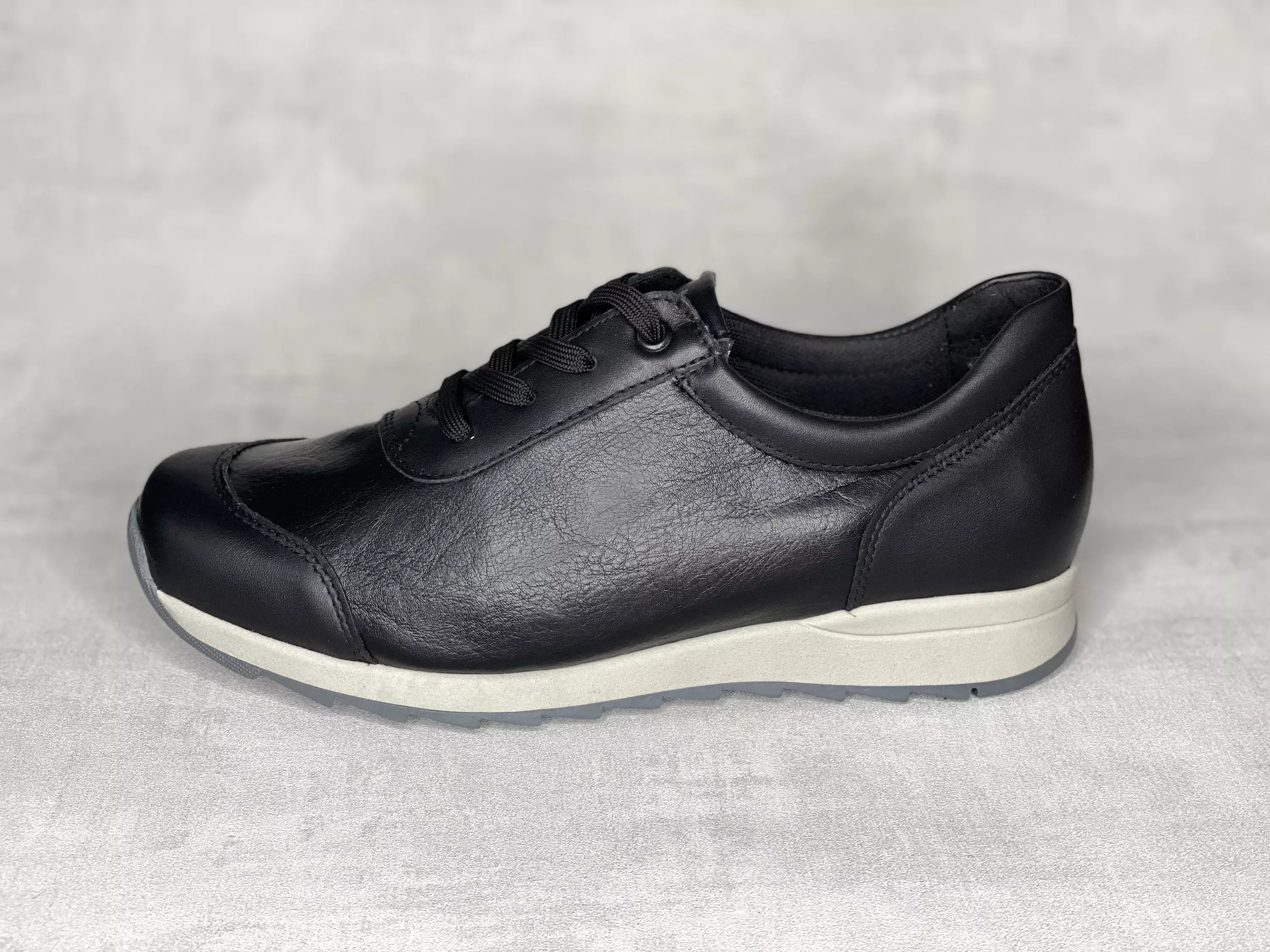 Mustat Pomar MARUNA naisten sneaker tyyliset ORTO kävelykengät. Kenkien pinta on stretch nahkaa, joka vie kenkien käyttömukavuuden aivan uudelle tasolle. Pomarin ORTO geeli-pohjallinen on muotoiltu ja se tukee sekä suojaa jalkaa. Tarpeen vaatiessa vaihdettavissa omaan jalkaasi parhaiten sopivaan pohjalliseen. Lesti on erityistilava, joten mikäli kengän kokosi on kahden koon välillä, suosittelemme valitsemaan pienemmän.