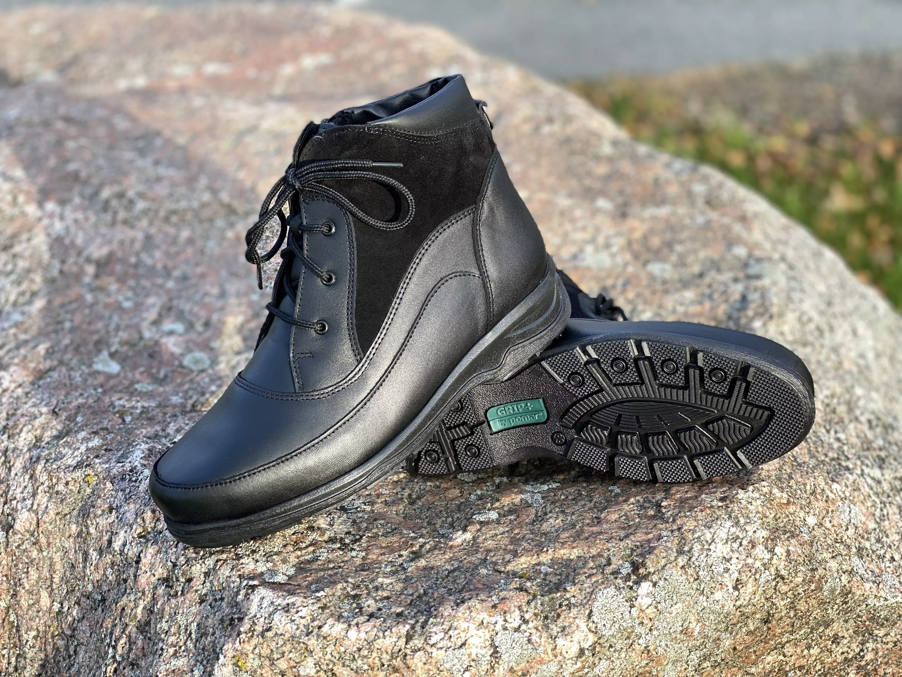 Mustat Pomar+ Lotta talvinilkkurit. Nämä naisten lämminvuoriset Pomar plus mokkasiininilkkurit on varustettu pitopohjalla. Villasekoitevuori on väriltään valkoinen. Naisten Pomar +plus leveälestiset nilkkurit ovat oiva valinta jalalle, joka vaatii kengältä enemmän sisätilaa. Vaihdettavat, muotoillut geelipohjalliset, joiden tilalle vaihdat tarvittaessa omia tarpeitasi parhaiten vastaavat pohjalliset.