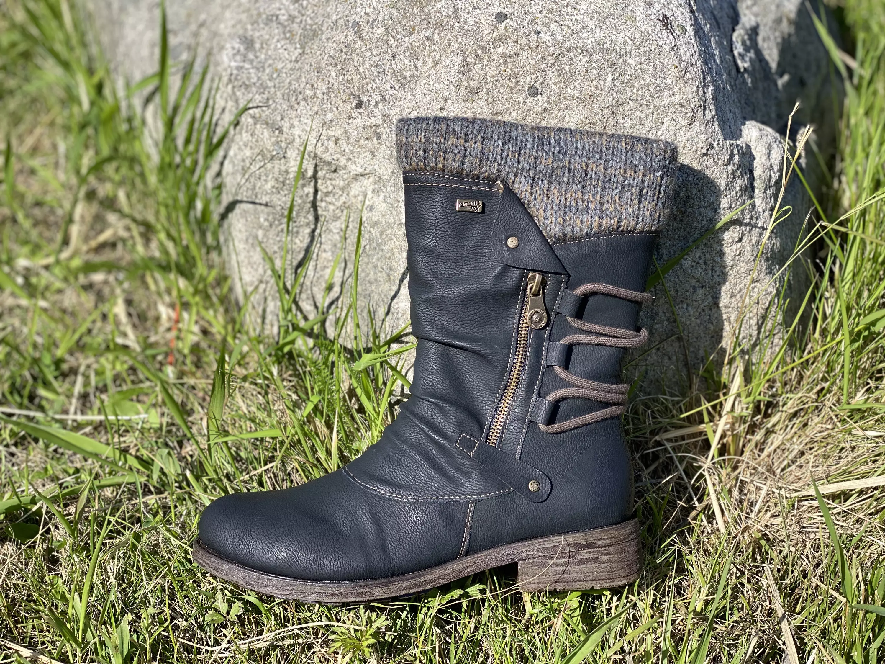 Mustat villavuoriset Remonte talvisaappaat. Ulkosyrjällä näyttävä koristevetoketju ja näyttävä leikkaus, sisäsyrjällä pukemista helpottava vetoketju. Kengän takaosassa on koristenauhat. Kengänsuussa hieman joustava neuleosio. RemonteTex pinnoite auttaa varpaita pysymään kuivina. Vaihdettavan pohjallisen tilalle sujahtaa tarvittaessa vaivattomasti omaan jalkaasi parhaiten istuva pohjallinen.