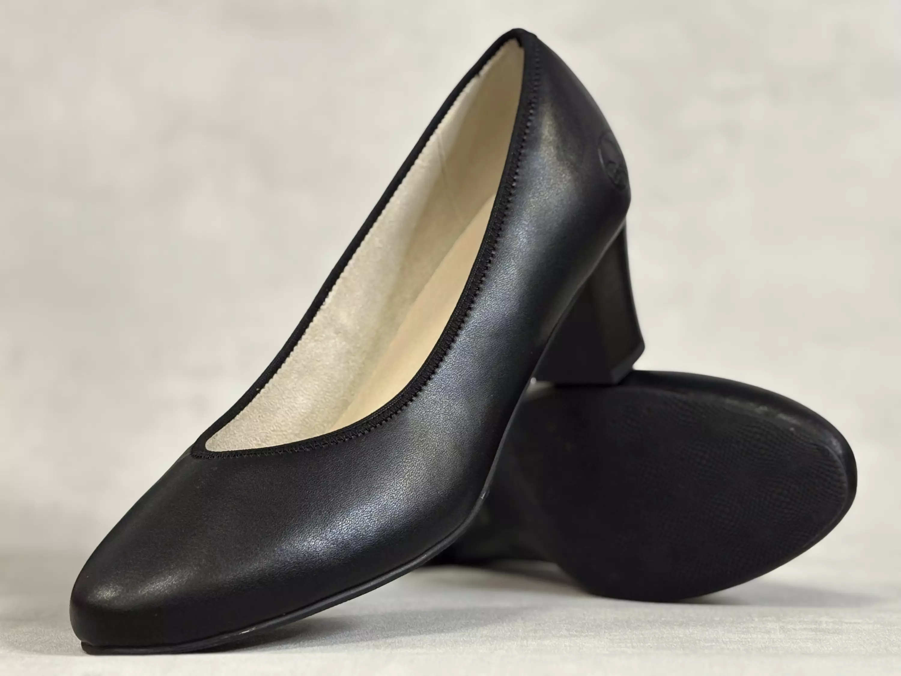 Mustat Rieker avokkaat. Klassiset nahkapintaiset avokkaat. Vuori tekstiiliä. Kapea F lesti. Kannan korkeus noin 5cm ja pohjan korkeus päkiän alta noin 0,5cm.