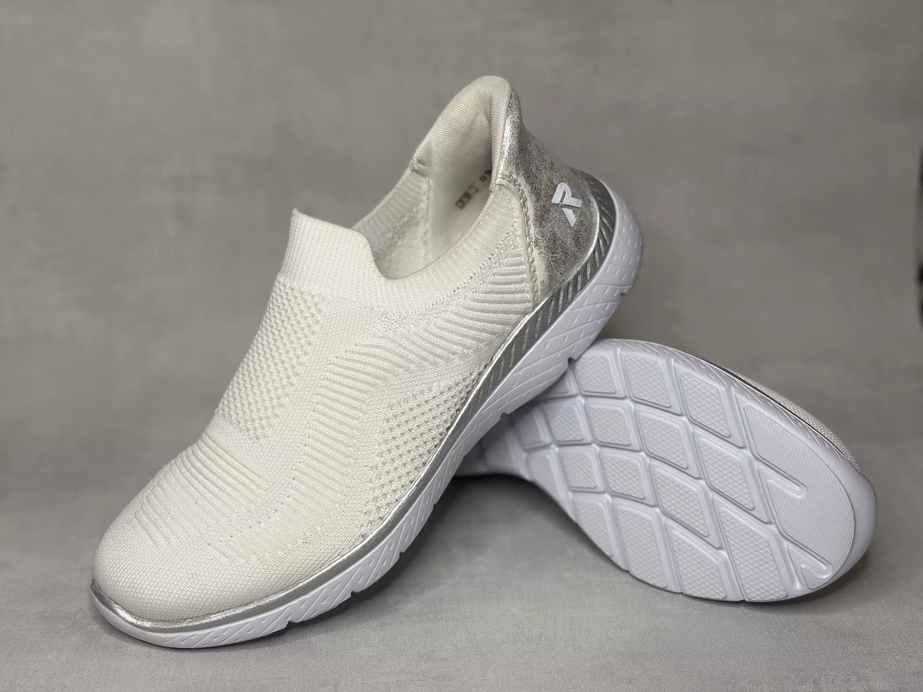 Valkoiset Rieker lenkkarit. Ready2Go kenkälusikkakanta vauhdittaa pukemista. Kevyesti joustava tekstiilipinta. Jalan alla mukautuvat Rieker Soft-pohjalliset. Kannan korkeus noin 3cm ja pohjan korkeus päkiän alta noin 1,5cm.