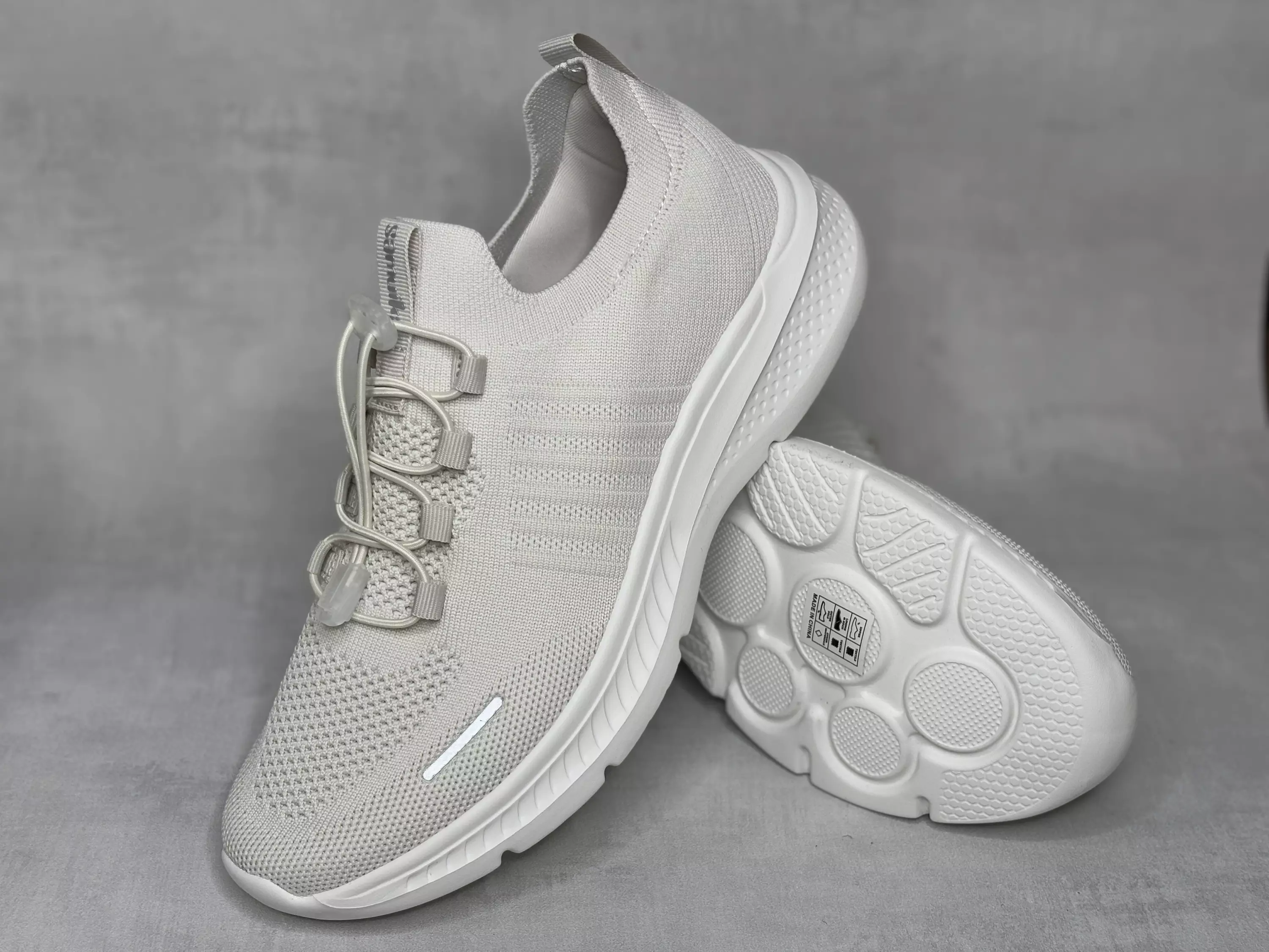 Luonnonvalkoiset Samuika lenkkarit. Kevyesti joustavat tekstiilipintaiset lenkkarit. Joustavat venykenauhat ovat säädettävät. Vaihdettavat pohjalliset, joten tarvittaessa sujautat kenkiin omia tarpeitasi parhaiten vastaavat pohjalliset. Kannan korkeus noin 4cm ja pohjan korkeus päkiän alta noin 2cm.