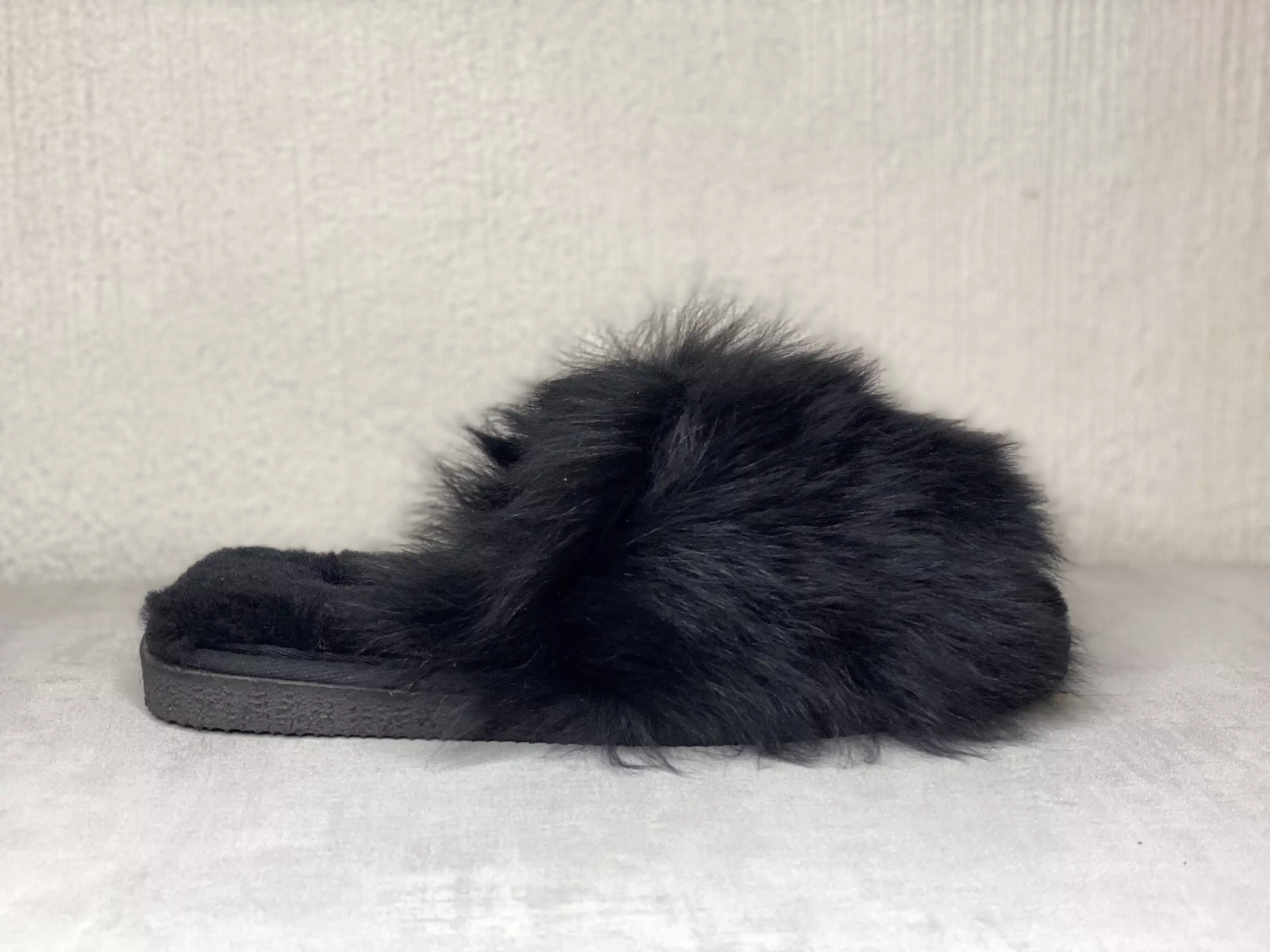 Mustat Shepherd of Sweden Tessan aamutossut. Pörröinen lampaannahkainen pinta.