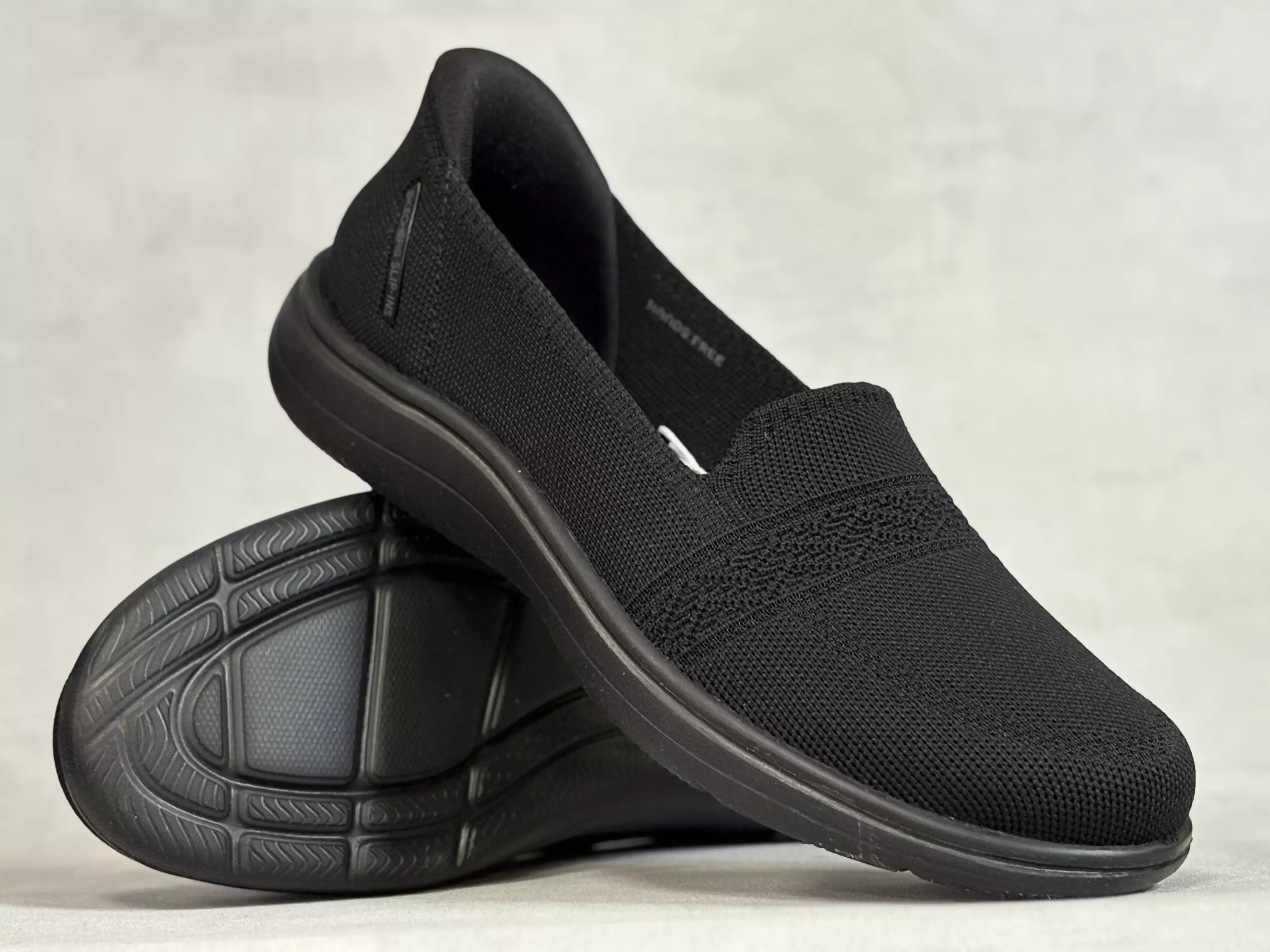 Mustat Skechers On The Go Flex Radiant -Kävelykengät. Tyylikkäästi kuvioitu musta tekstiilinen kävelykenkä varustettuna Slip-ins kannalla, jonka avulla jalat oikein sujahtavat kenkiin. Hieman joustava tekstiili sekä pehmeä Goga Mat -sisäpohjallinen varmistavat mukavan kävelykokemuksen ja lusikkakannassa oleva kantapehmuste pitää kantapään paikallaan. Kenkien lesti on Skechersin Classic Fit ja pohjan korkeus kantapäässä on noin 3cm sekä päkiän kohdalla noin 2cm. Kengät ovat konepestävät.