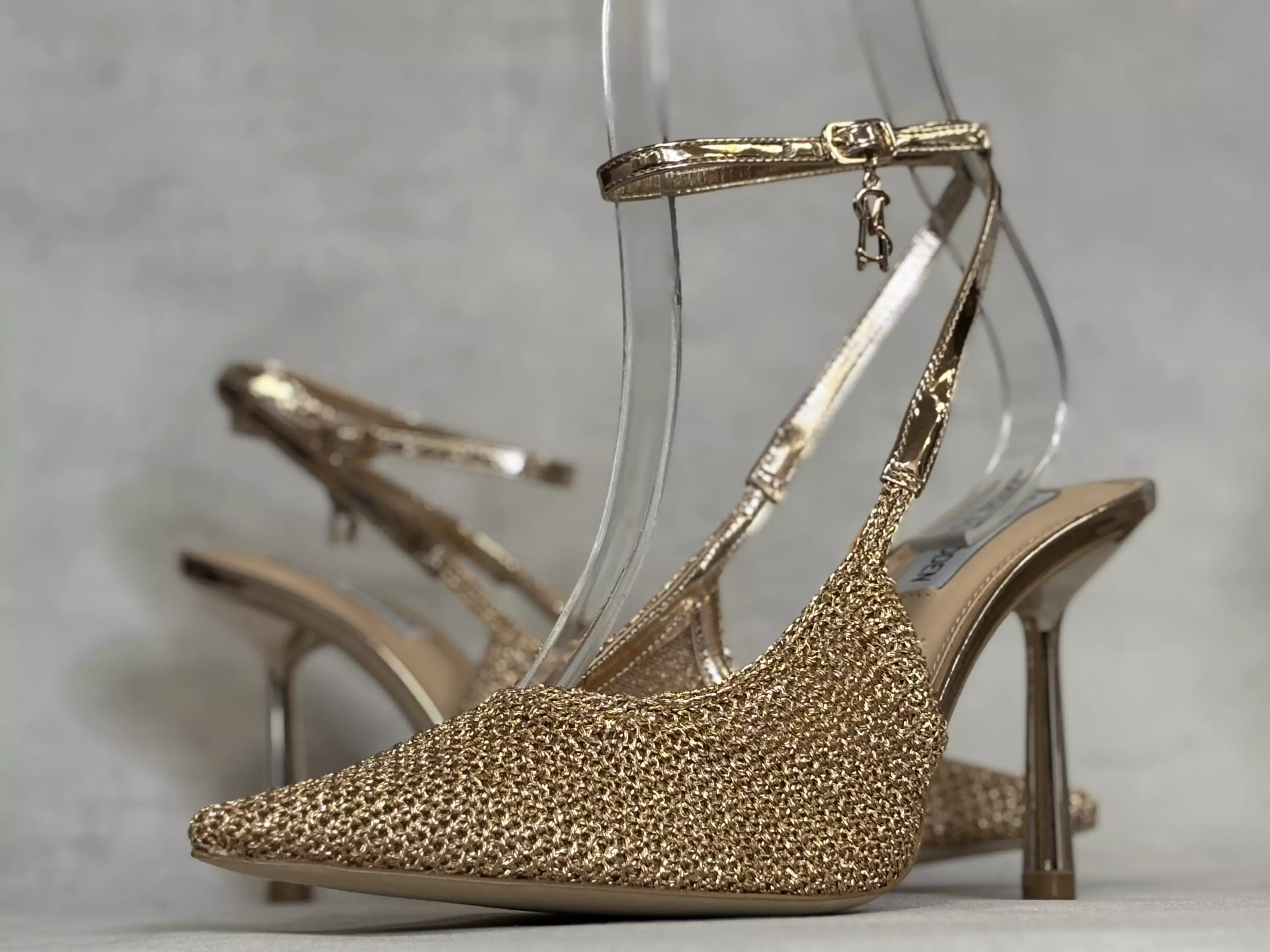 Ruusukultaiset Steve Madden Ascension avokkaat. Upea metallinhohtoinen pinta. Ruusukultainen nilkkaremmi, joka säätyy pienellä soljella, josta roikkuu metallinen Steve Madden SM-logo. Tyylikäs kapeneva kärki. Kultainen korko viimeistelee kenkien ulkonäön. Kapea lestimitoitus. Kannan korkeus noin 9,5cm ja pohjan korkeus päkiän alta noin 0,5cm.