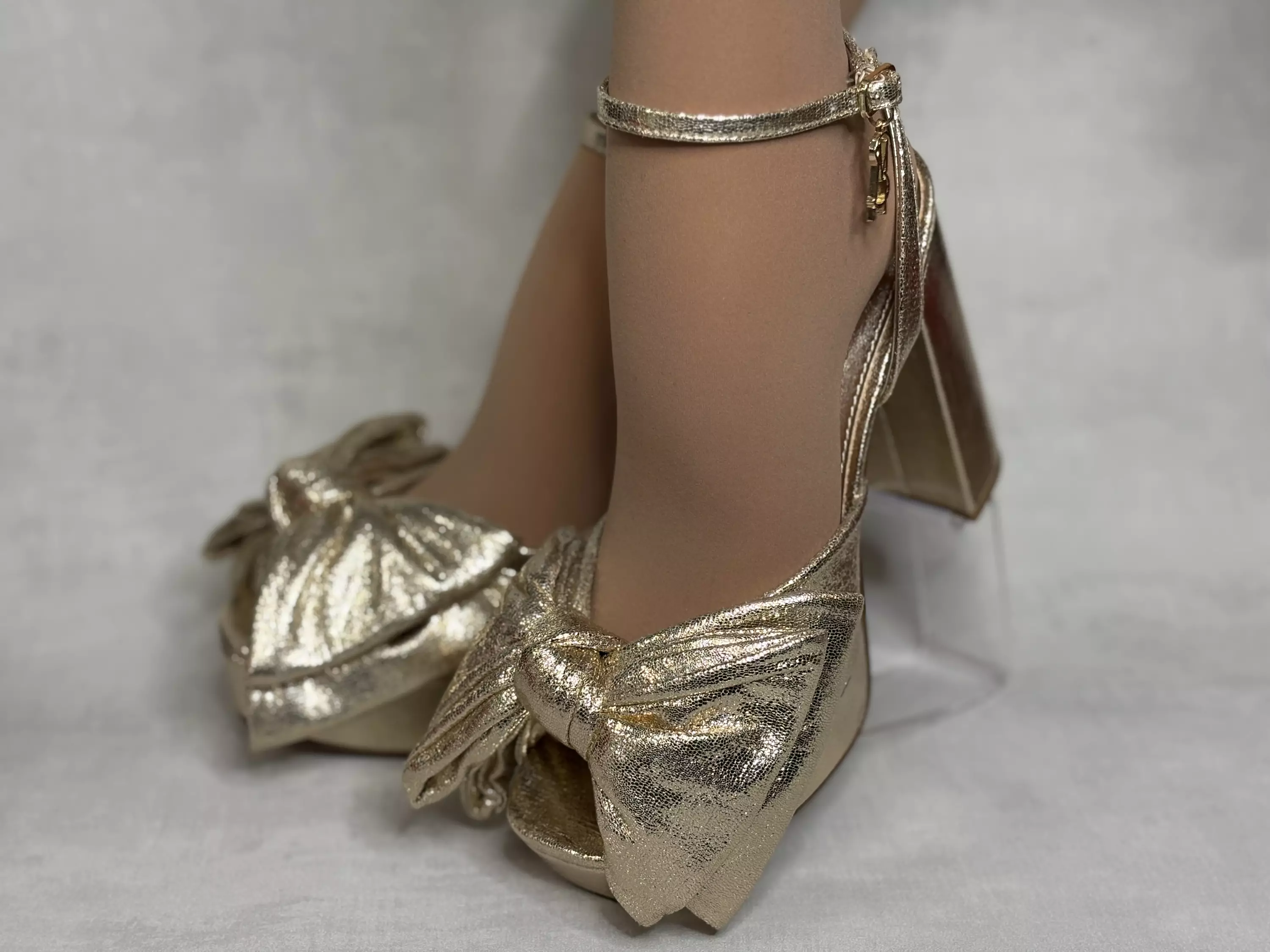 Kultaiset rusettikoristeiset tolppakorkoiset Steve Madden Lively korkokengät