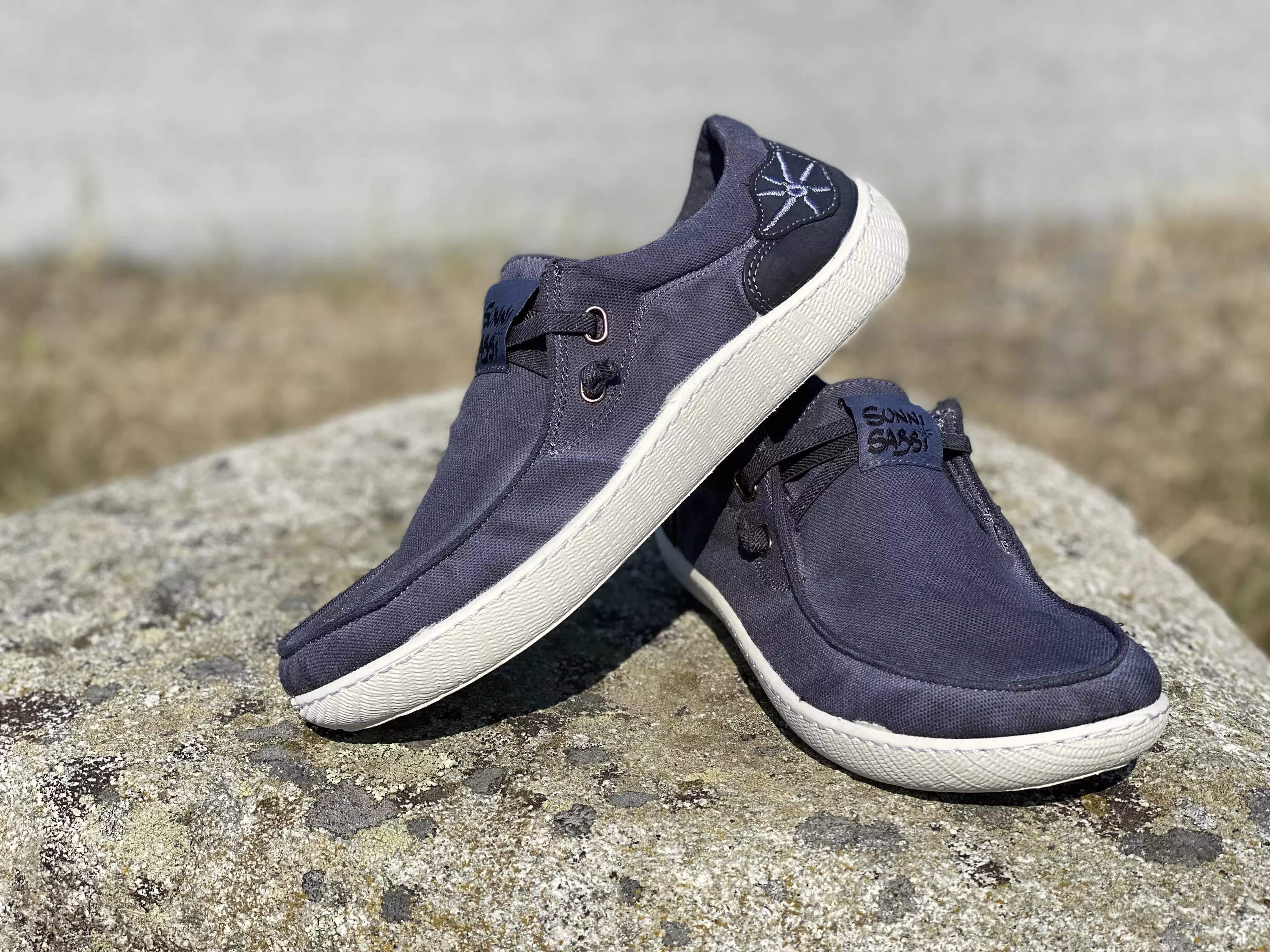 Tummanharmaat Sunni Sabbi Kikai Onix kangaskengät. Joustavilla nauhoilla varustetut kävelykengät, joissa on pehmeät vaihdettavat pohjalliset. Mokkasiinimallisessa kärjessä on varpaille hyvin tilaa. Leveähkö lesti.