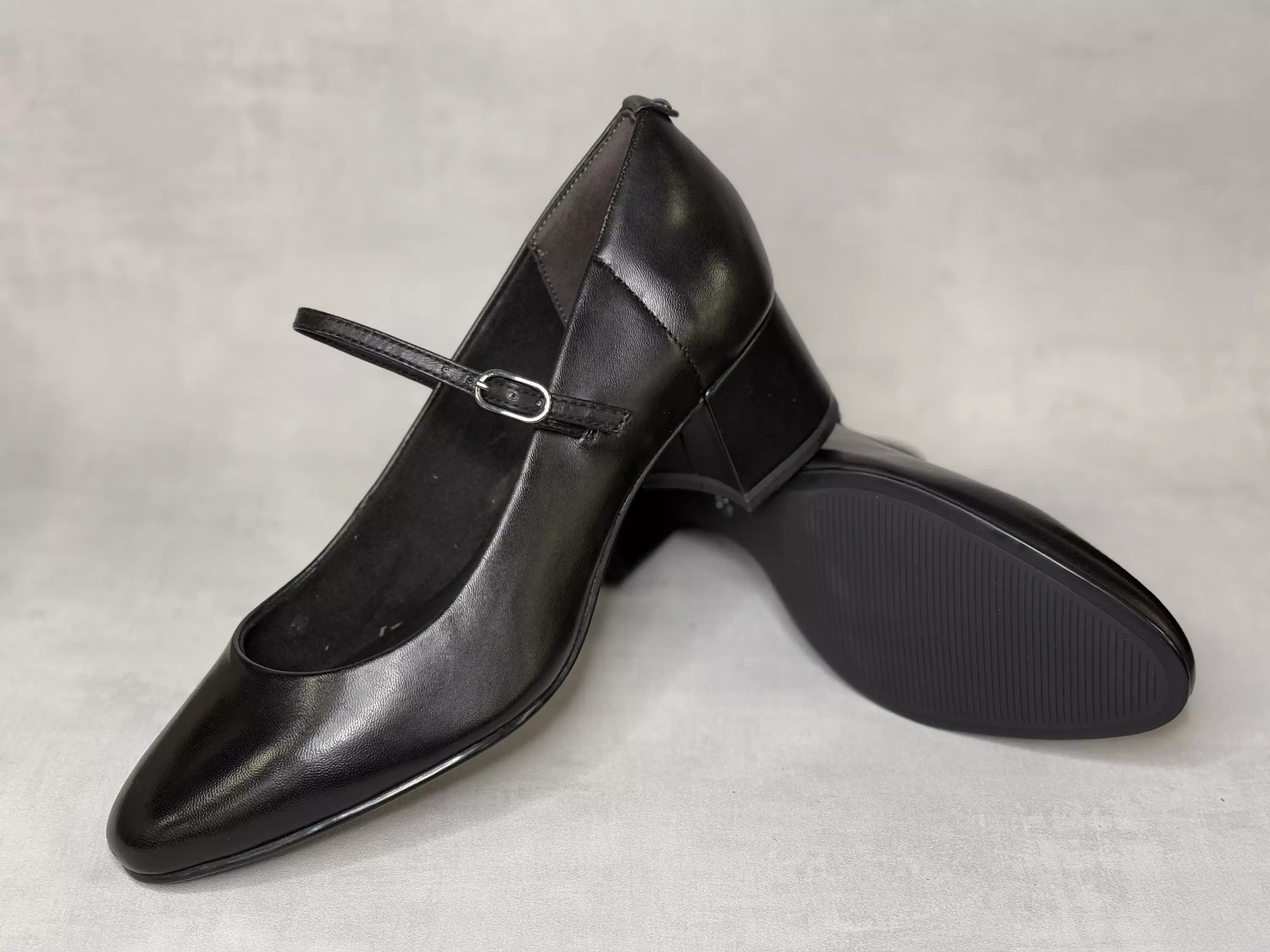 Mustat Tamaris korkokengät. Matalakorkoiset, nahkaiset korkokengät. Ovaalin mallisella soljella varustettu remmi. Soljen alla pieni istuvuutta parantava venyke. Pehmustettu Tamaris Touch it-sisäpohja. Kannan korkeus noin 4,5cm ja pohjan korkeus päkiän alta noin 0,5cm.