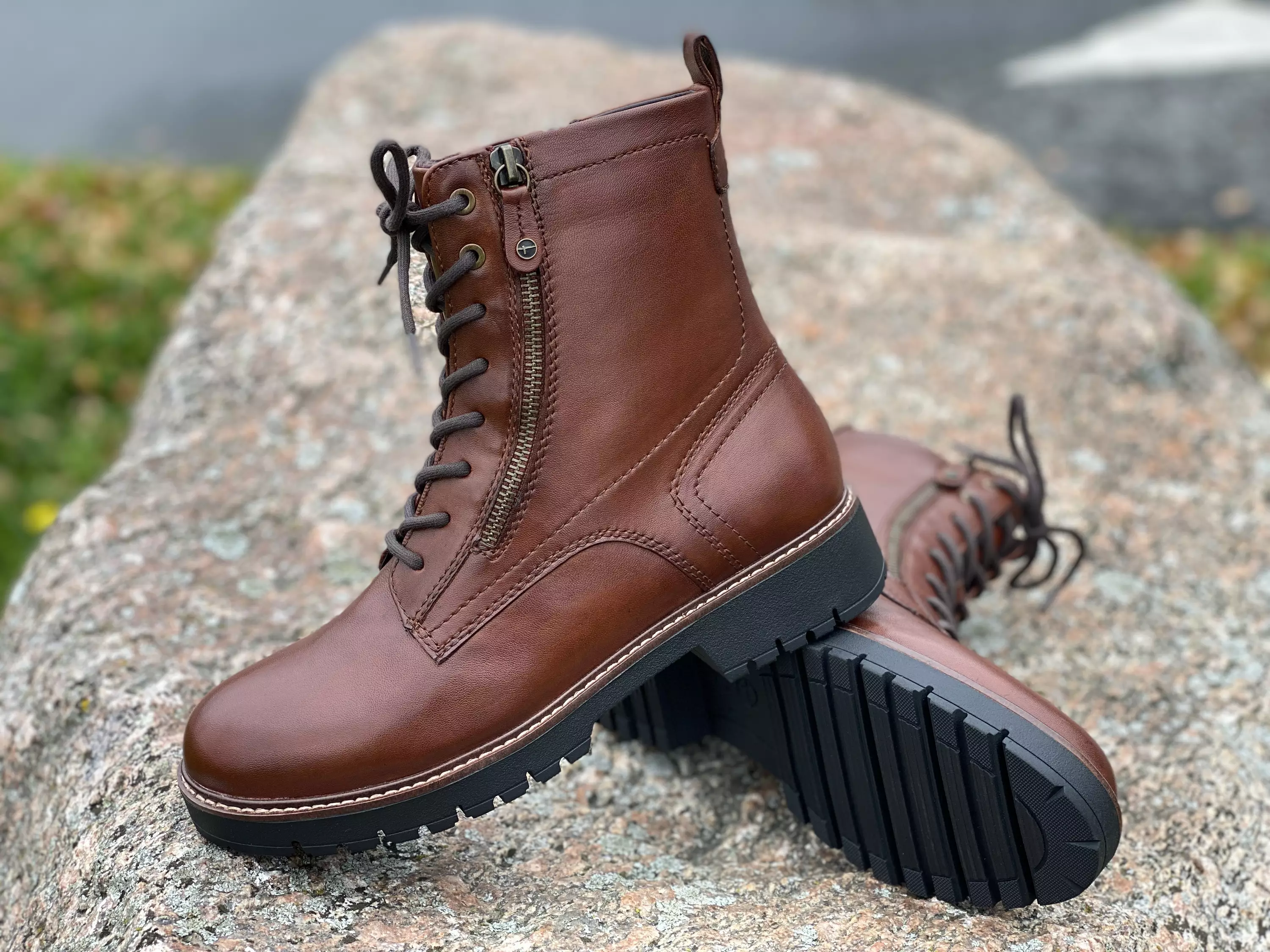 Ruskeat Tamaris Muscat Leather maiharit. Pehmeästä nahasta valmistetut maiharit, joihin on tuotu lisäilmettä pinnan tikkauksilla. Varren takaosassa vetolenkki. Ulkosyrjällä koristevetoketju, sisäsyrjällä pukemista vauhdittava vetoketju. Nauhojen avulla kiristät maiharit jalkaasi sopivan kireälle. Matalanukkainen teddytekstiilivuori. Normaali lesti. Kannan korkeus noin 3,5cm ja pohjan korkeus päkiän alta noin 2cm.