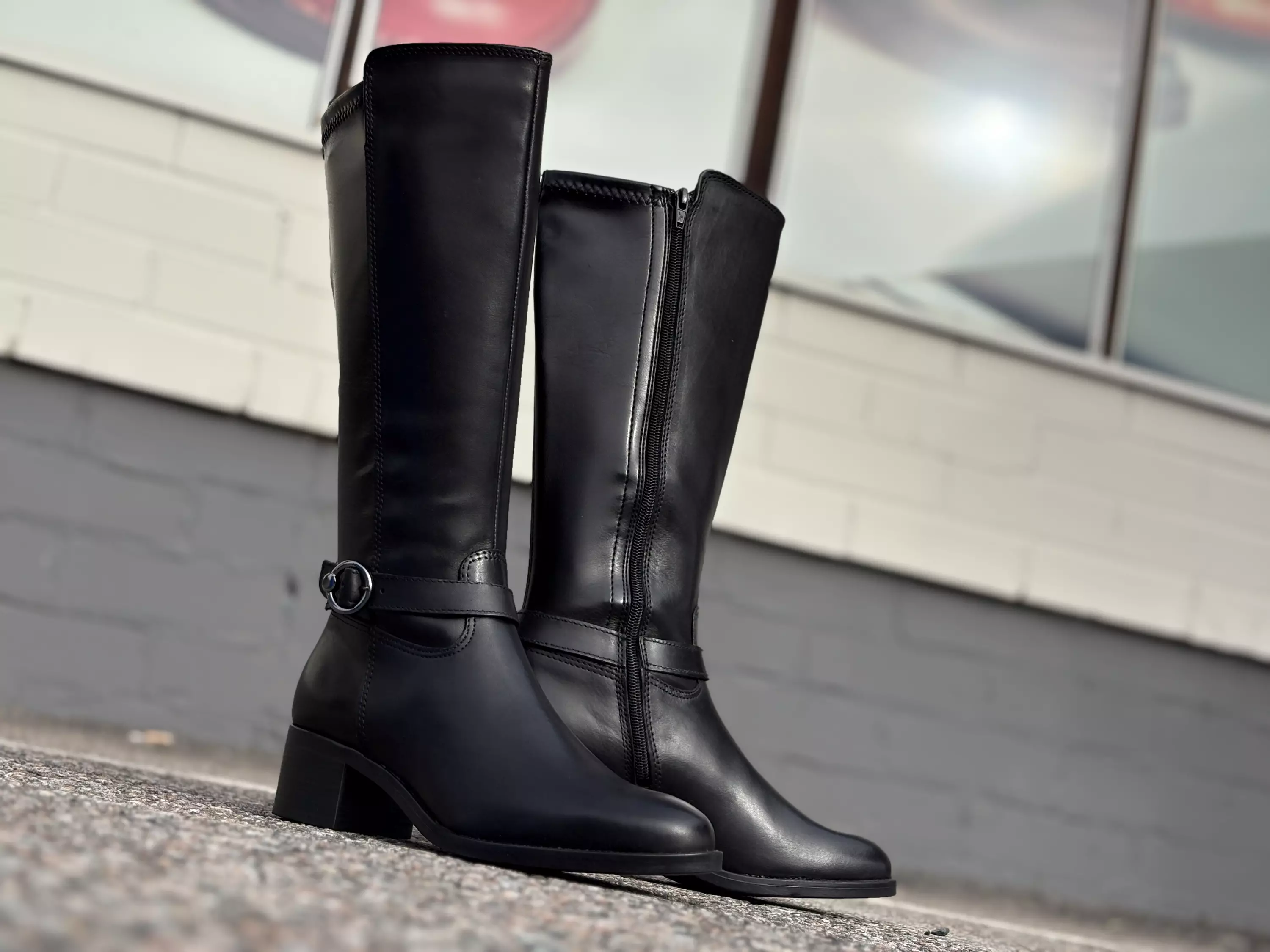 Mustat Tamaris saappaat. Nämä nahkasaappaat on varustettu tekonahkaisella joustavalla varren takaosalla. Joustava takaosa parantaa varren istuvuutta. Sisäsyrjällä on saappaiden pukemista helpottava vetoketju. Sirossa ohuessa nilkkaremmissä on pyöreä metallisolki. Tyylikäs hieman kapeneva kärki. Lestimitoitus normaali G. Kannan korkeus noin 4,5cm ja pohjan korkeus päkiän alta noin 1cm.
