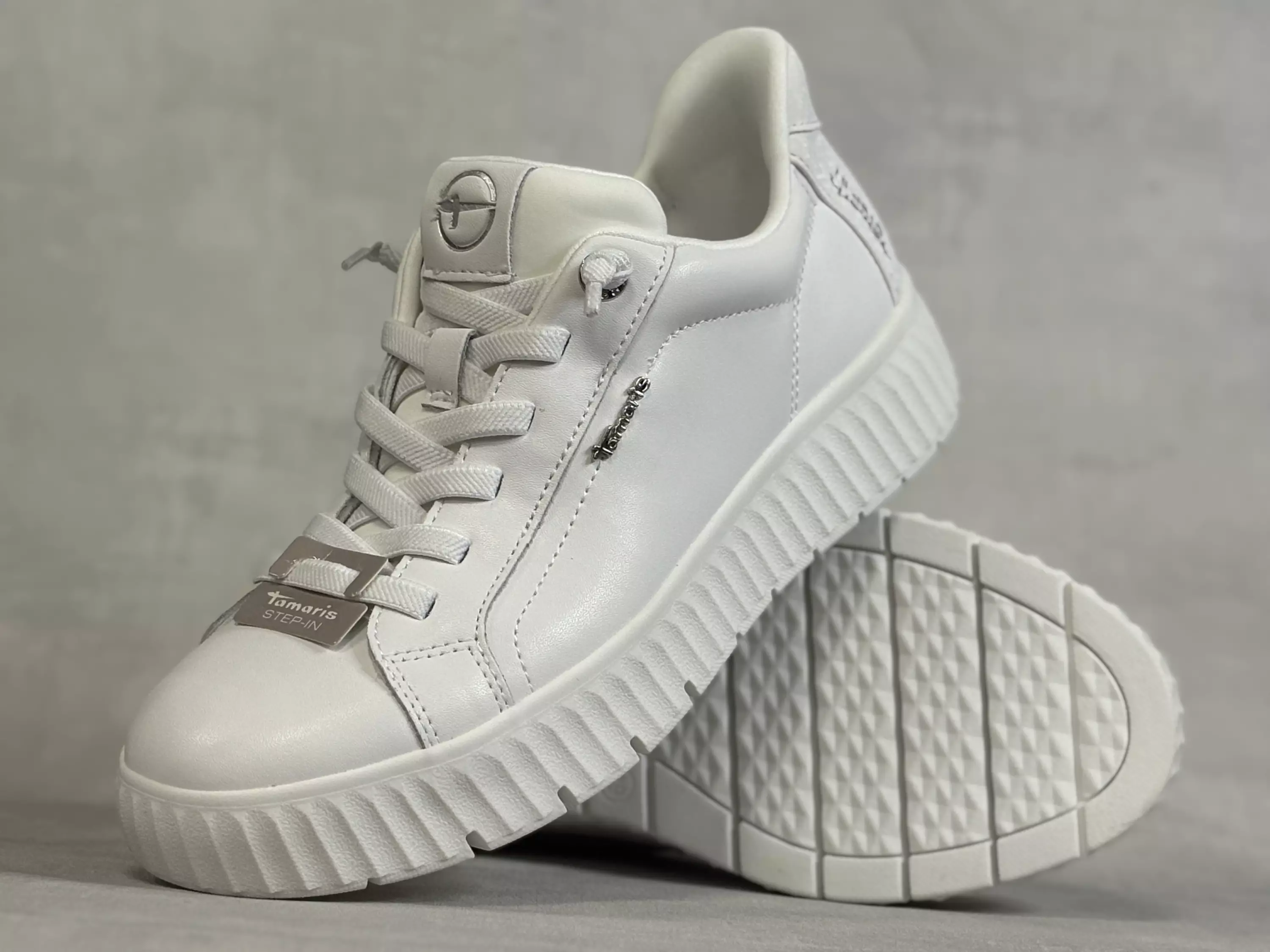 Valkoiset H-lestiset Tamaris Comfort tennarit Step-in kenkälusikkakannalla