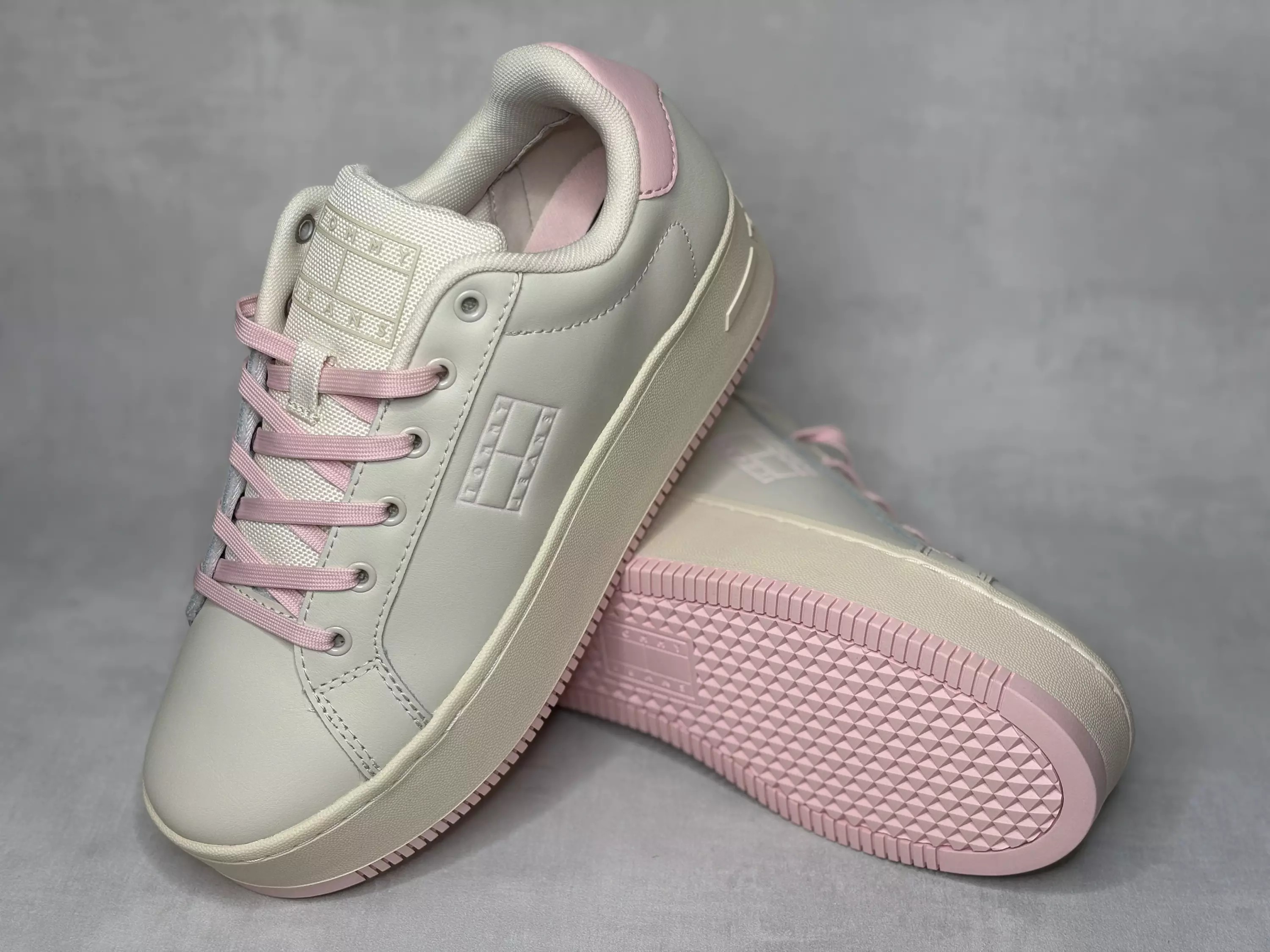 Kermanvalkoiset Tommy Jeans TJW Flatform tennarit vaaleanpunaisilla yksityiskohdilla