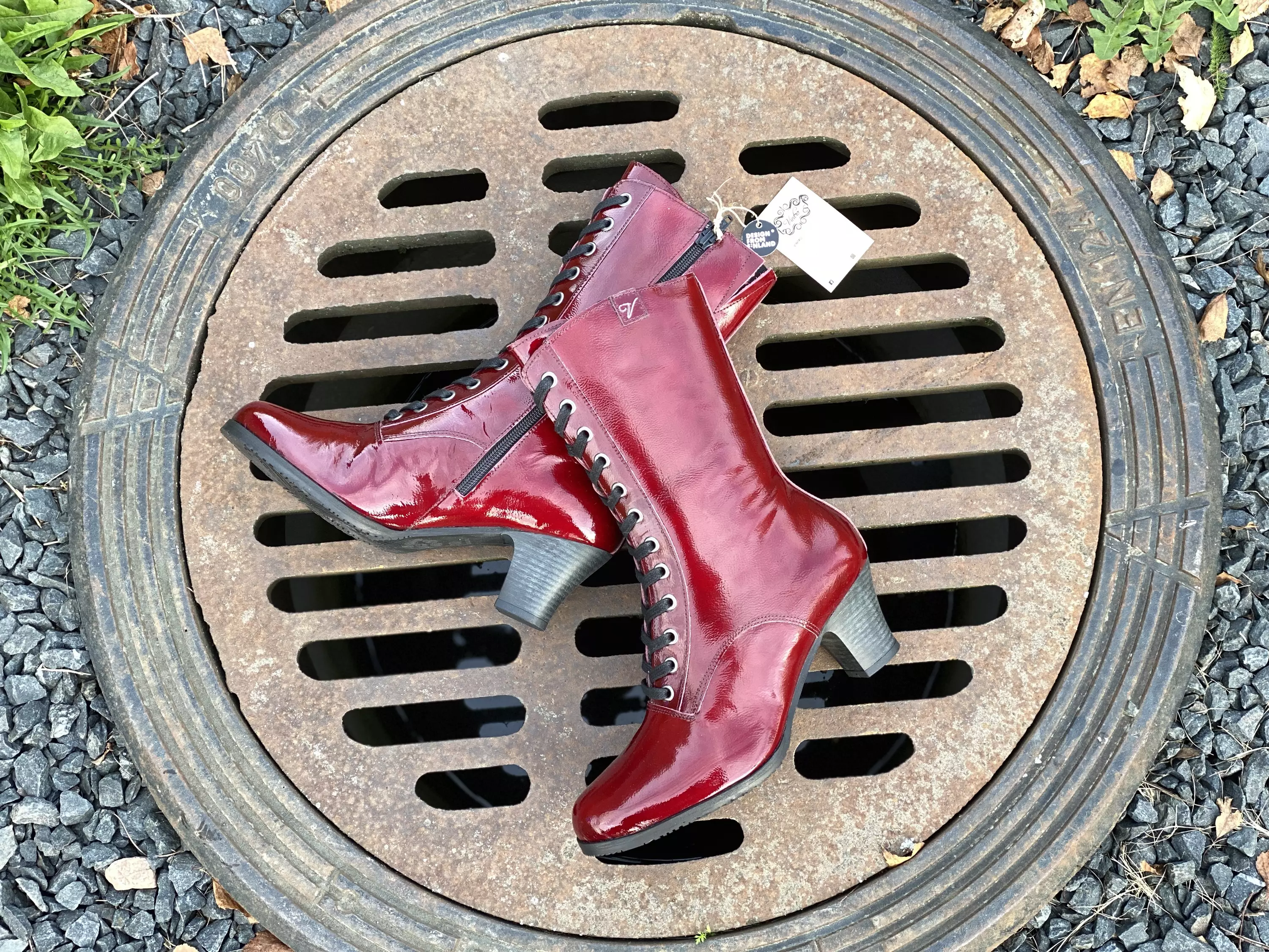 Upeat tummanpunaiset Vintro Vilma Cybil Tapiz saapikkaat. Naiselliset lakerinahkaiset saapikkaat ovat tyylikäs valinta. Sisäsyrjällä pukemista helpottava vetoketju sekä pieni istuvuutta parantava venyke. Nauhoituksen avulla saapikkaat on helppo säätää omaan jalkaan sopiviksi. Ulkosyrjällä pieni Vintro V-logo. Maltillinen korko, joten saapikkaat sopivat useimmille arkiseenkin käyttöön. Tyylikäs hieman kapeneva kärki.