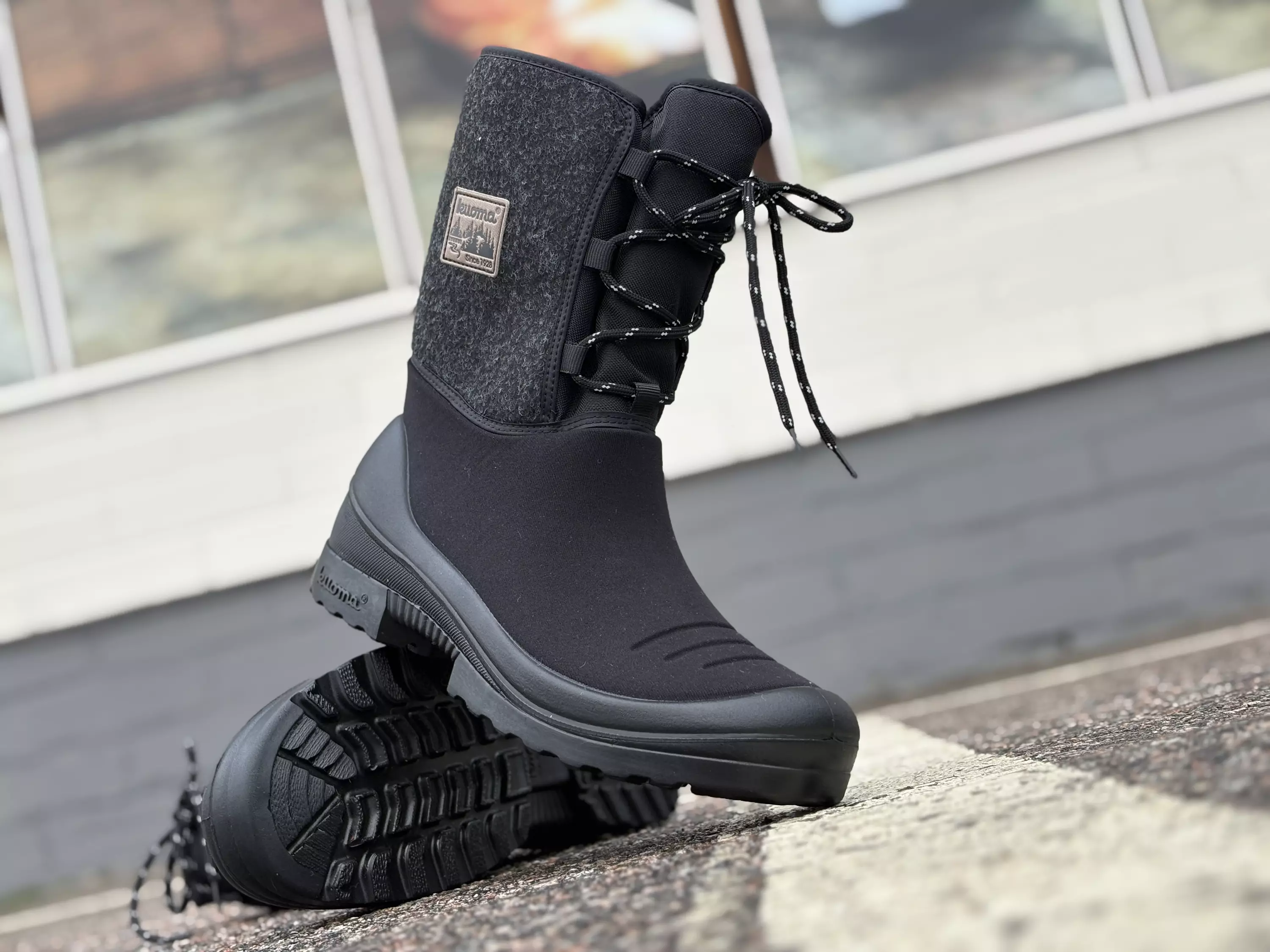 Kuoma Lumitarina - heijastavilla nauhoilla kiristettävä reipashenkinen saapas, jonka varren huopaosa on eläväpintaista PET-kierrätysmateriaalia