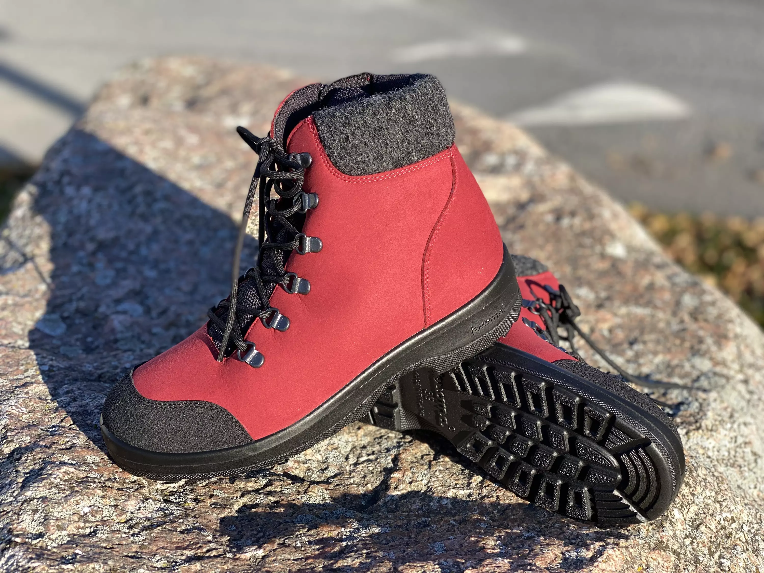 Punainen pörrövuorinen talvikenkä