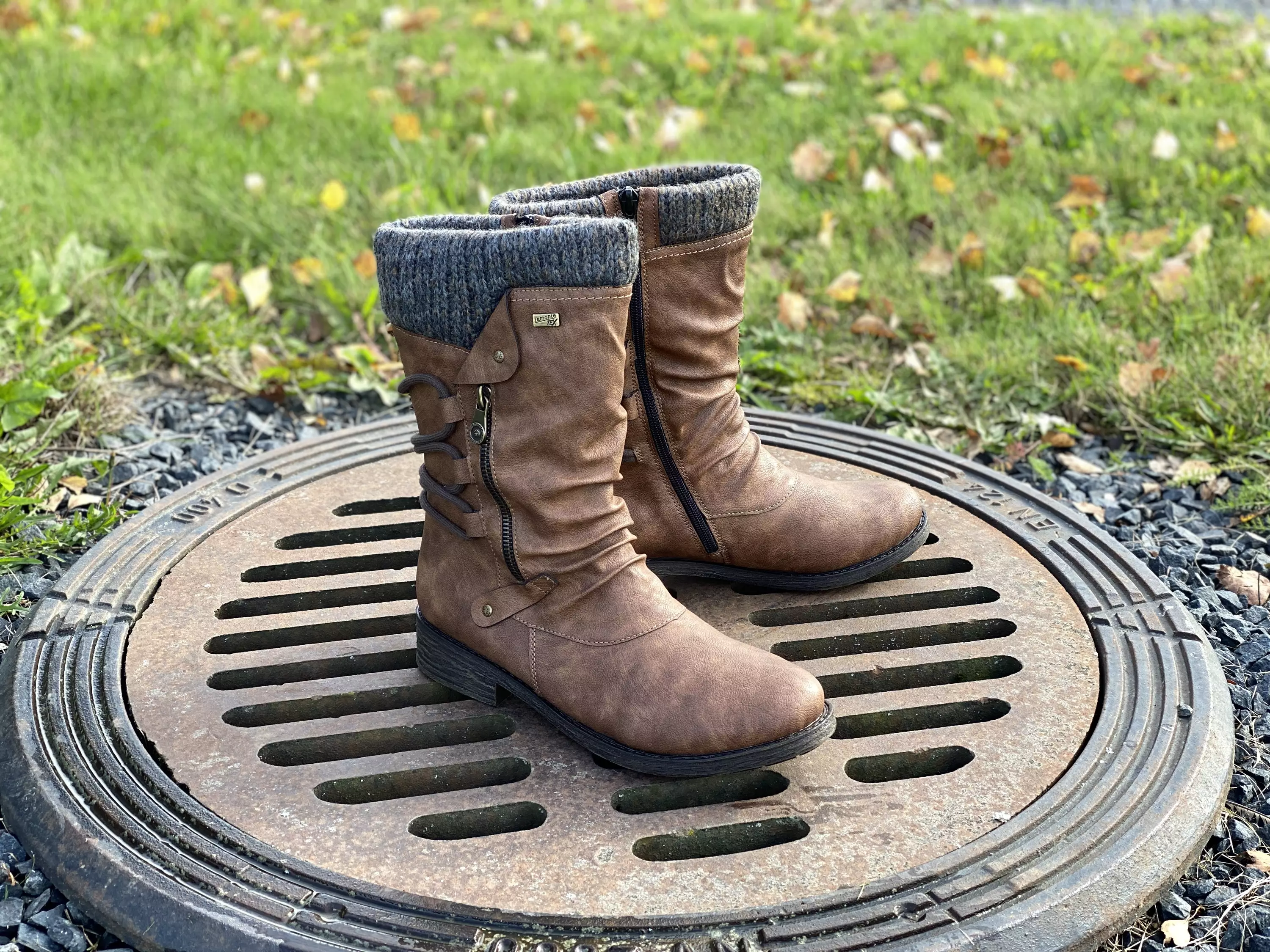 Ruskeat villavuoriset Remonte talvisaappaat. Ulkosyrjällä näyttävä koristevetoketju ja näyttävä leikkaus, sisäsyrjällä pukemista helpottava vetoketju. Kengän takaosassa on koristenauhat. Kengänsuussa hieman joustava neuleosio. RemonteTex pinnoite auttaa varpaita pysymään kuivina. Vaihdettavan pohjallisen tilalle sujahtaa tarvittaessa vaivattomasti omaan jalkaasi parhaiten istuva pohjallinen.